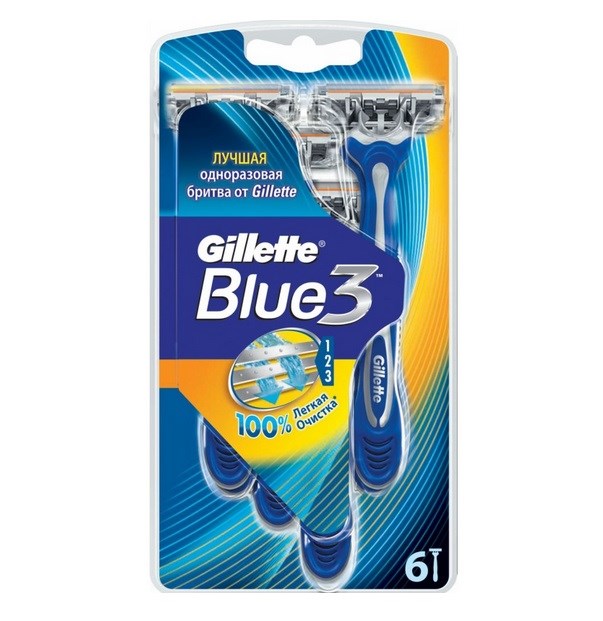 Gillette Blue 3 Disposable Scrapers - 6 Pcs. - here you get disposable scrapers of good quality. Gillette is the uncrowned king of men's disposable shaving equipment.
