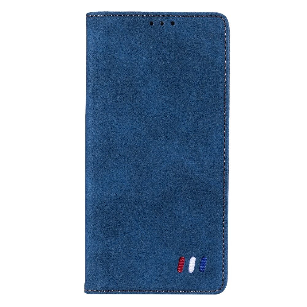 001 Series Auto-absorbed Skin-touch Feeling Leather Full-Protection Wallet Phone Case for iPhone 13 mini 5.4 inch - Blue