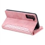 005 Style for Samsung Galaxy S21 4G / 5G, Shockproof Wallet Case Rhombus Texture Zipper Pocket PU Leather Anti-fall Phone Cover Stand - Pink