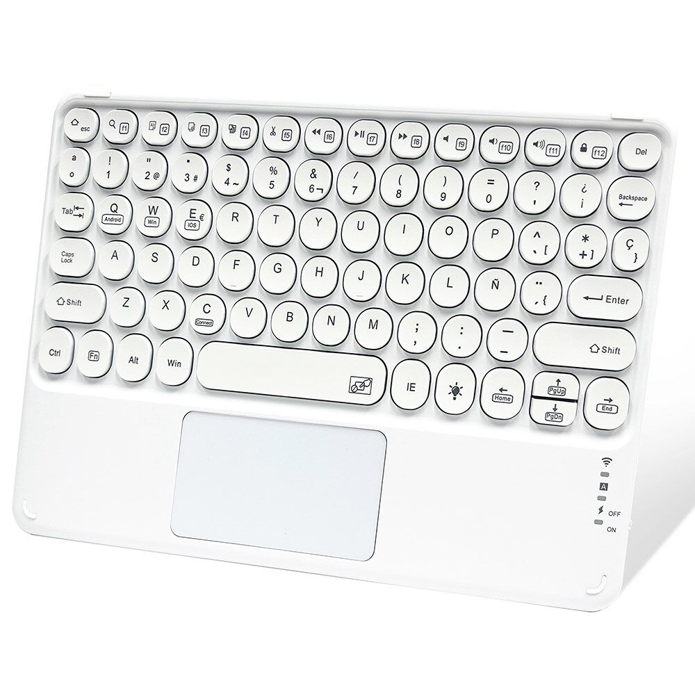 10 inch Portable Wireless Bluetooth Keyboard with 7 Backlit/Touchpad for Android/iOS/Windows Round Keycap Slim Cordless Keyboard - Spanish