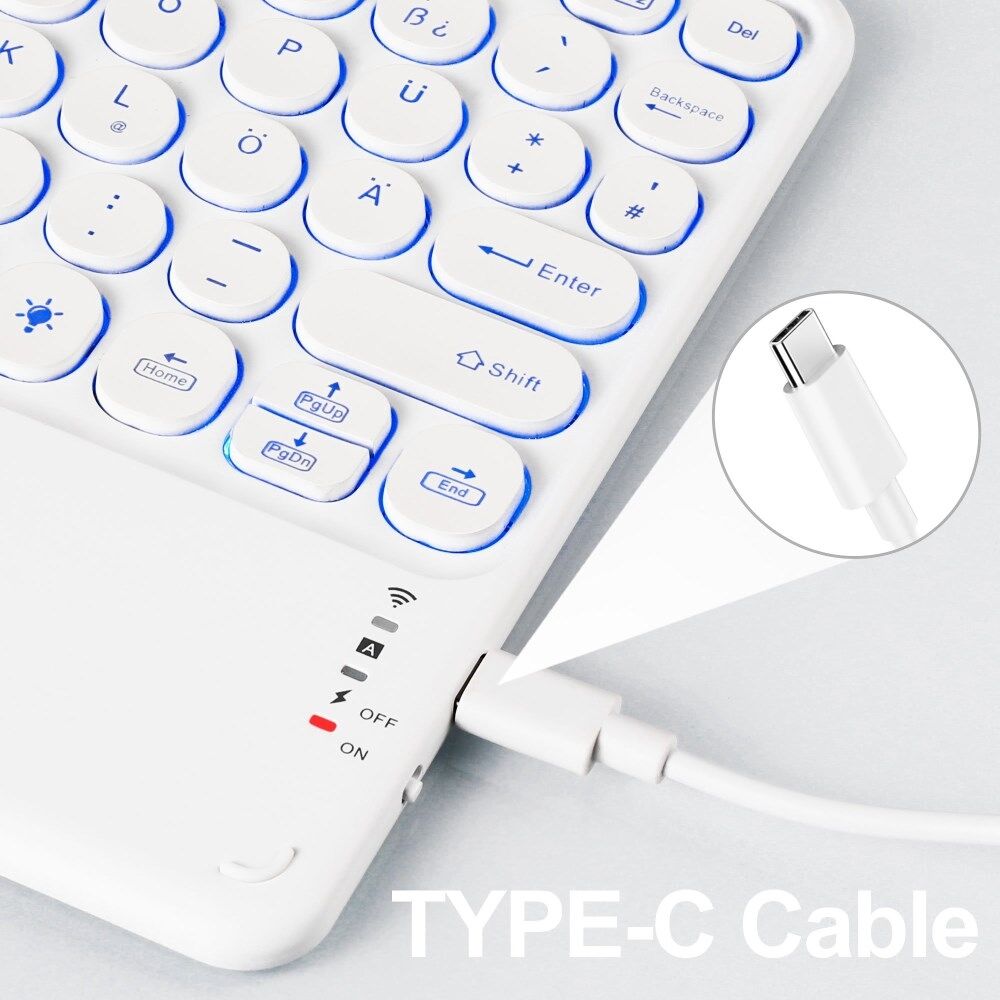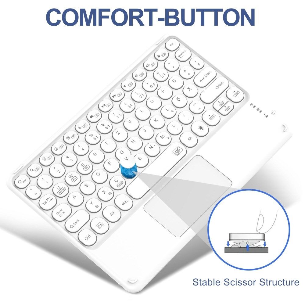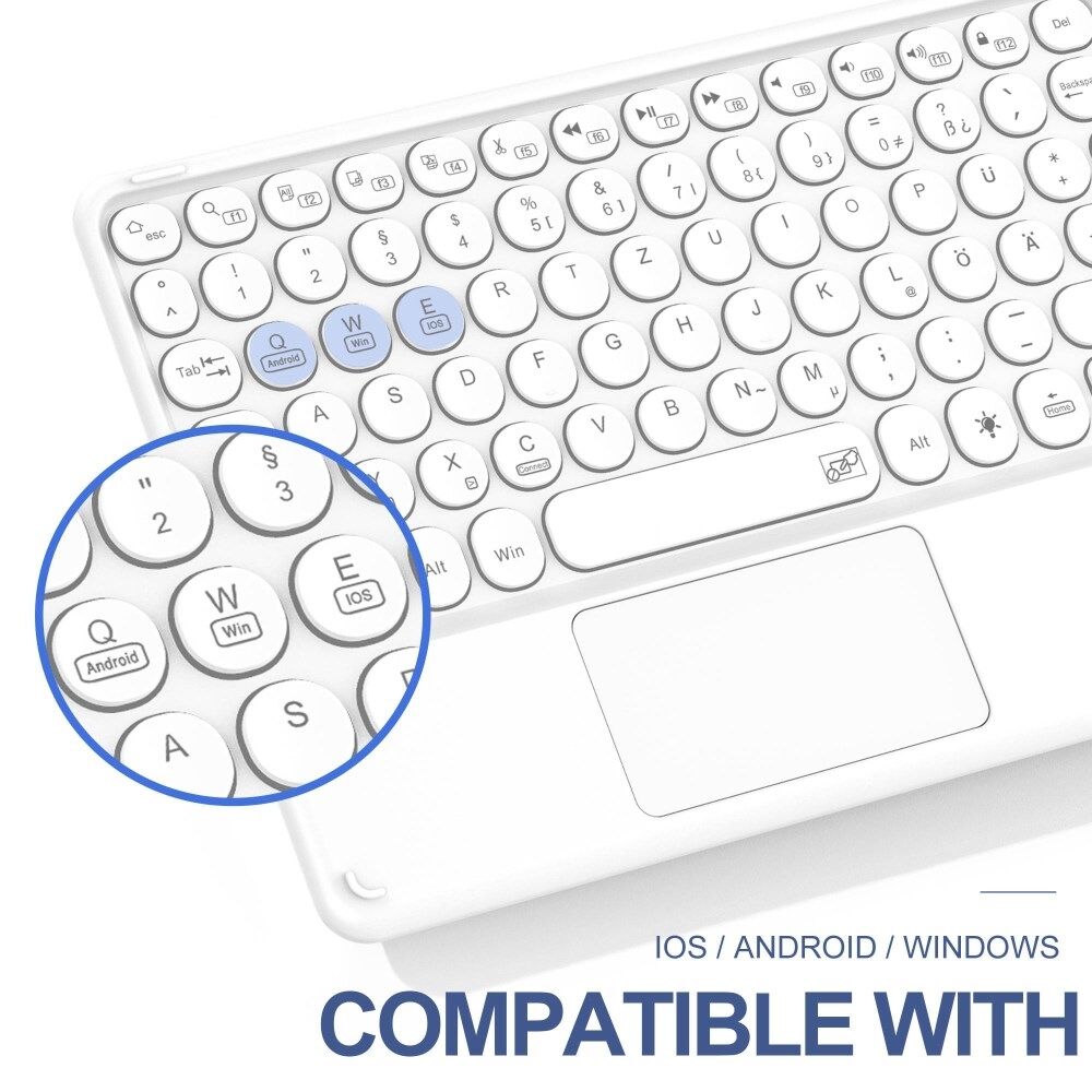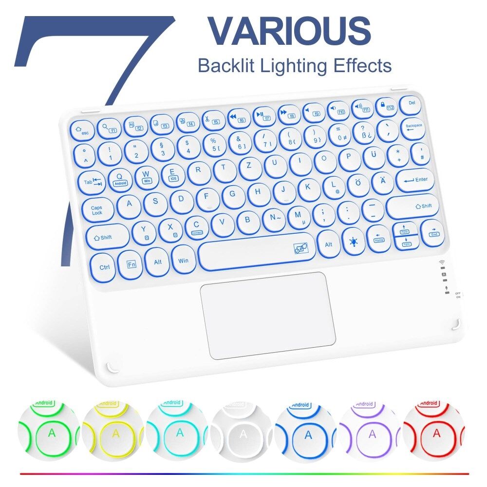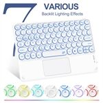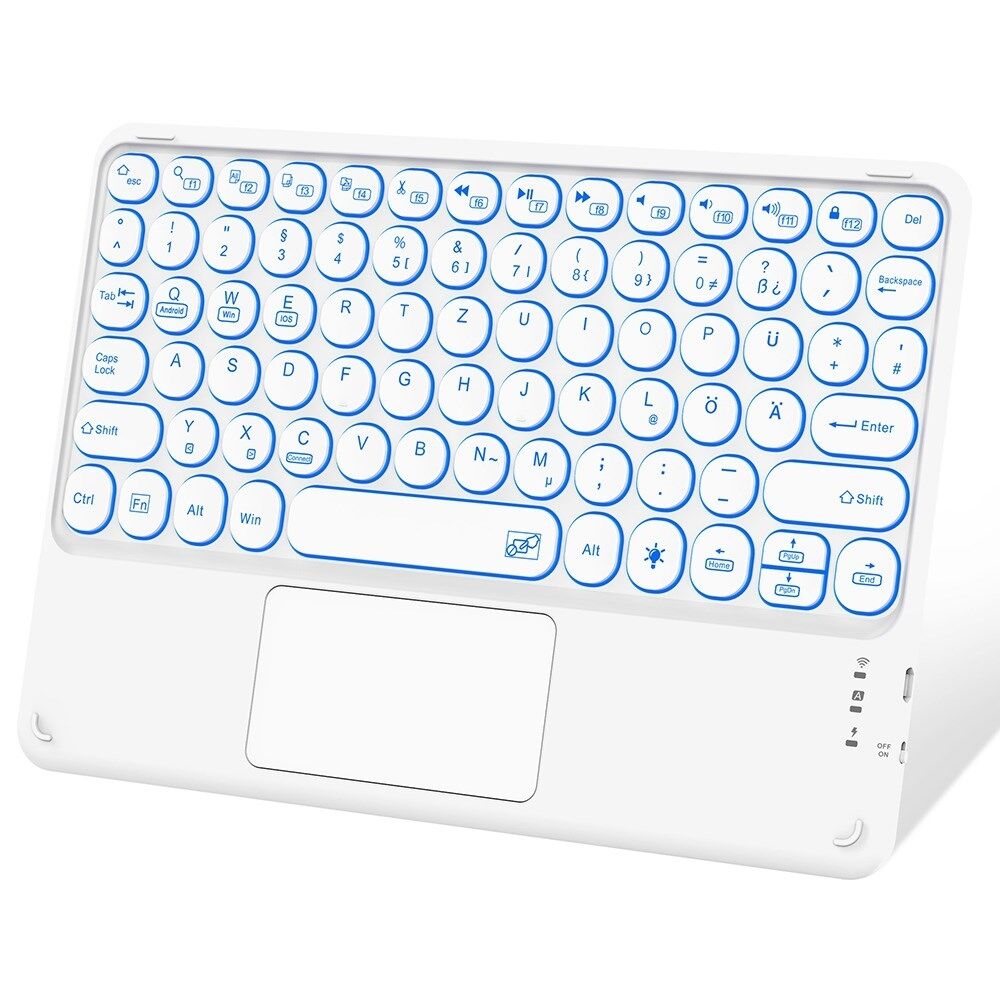 10 inch Portable Wireless Bluetooth Keyboard with 7 Backlit/Touchpad for Android/iOS/Windows Round Keycap Slim Cordless Keyboard