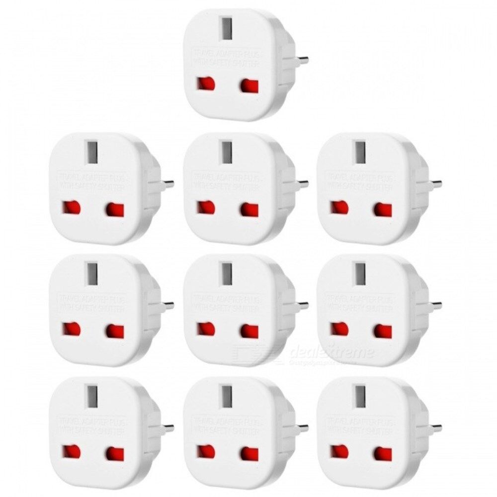 10Pcs/Set EU to UK AC Power Travel Adapter Plug Converter with Safety Shutter- White