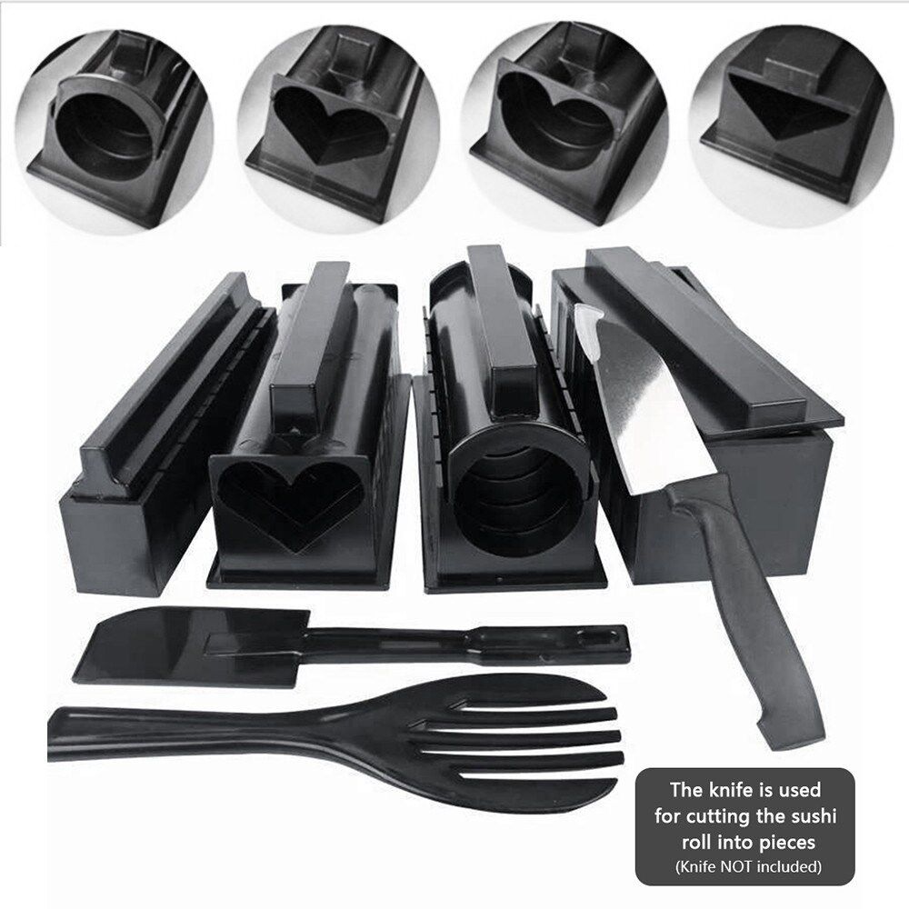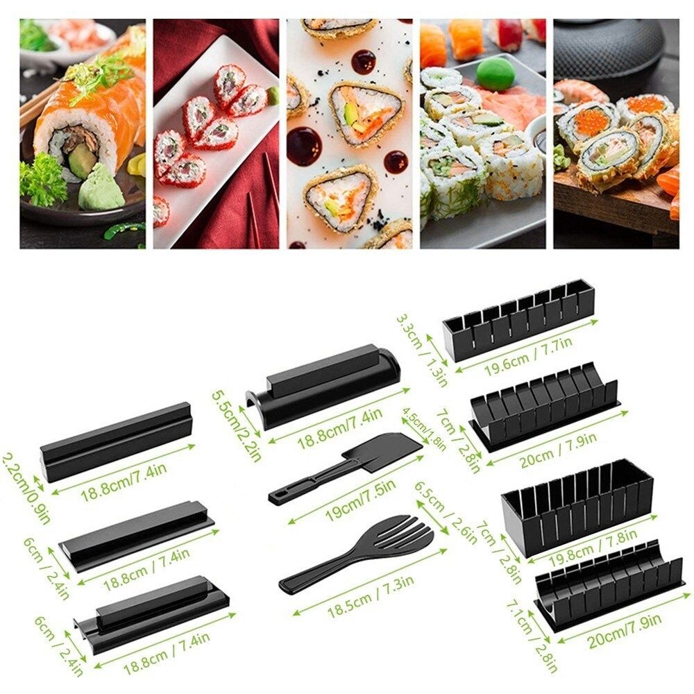 10pcs Sushi Making Kit Professional All in One Sushi Set Rice Roll Maker DIY Sushi Mold with Different-Shaped Molds Fork Spatula Home Sushi Making Tool