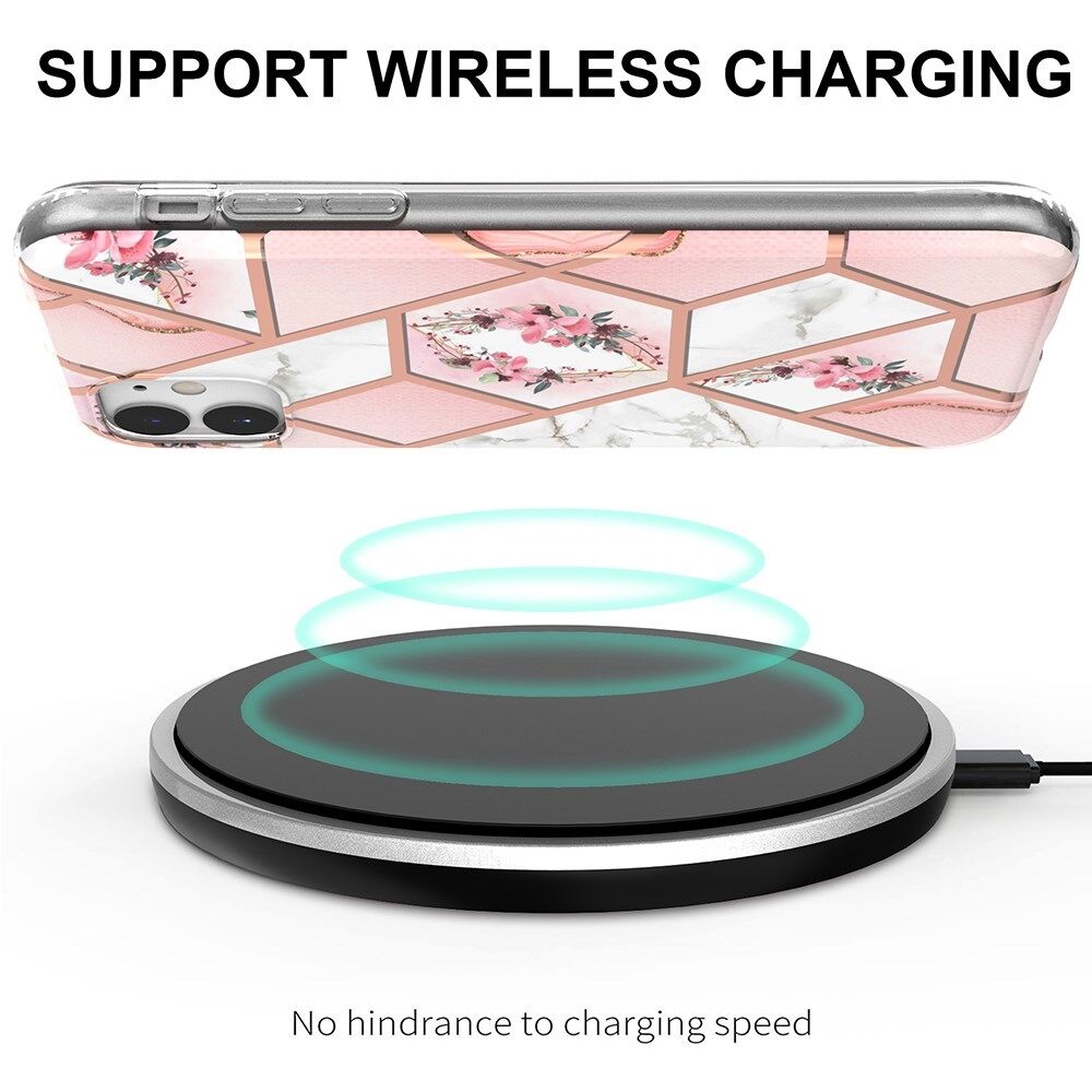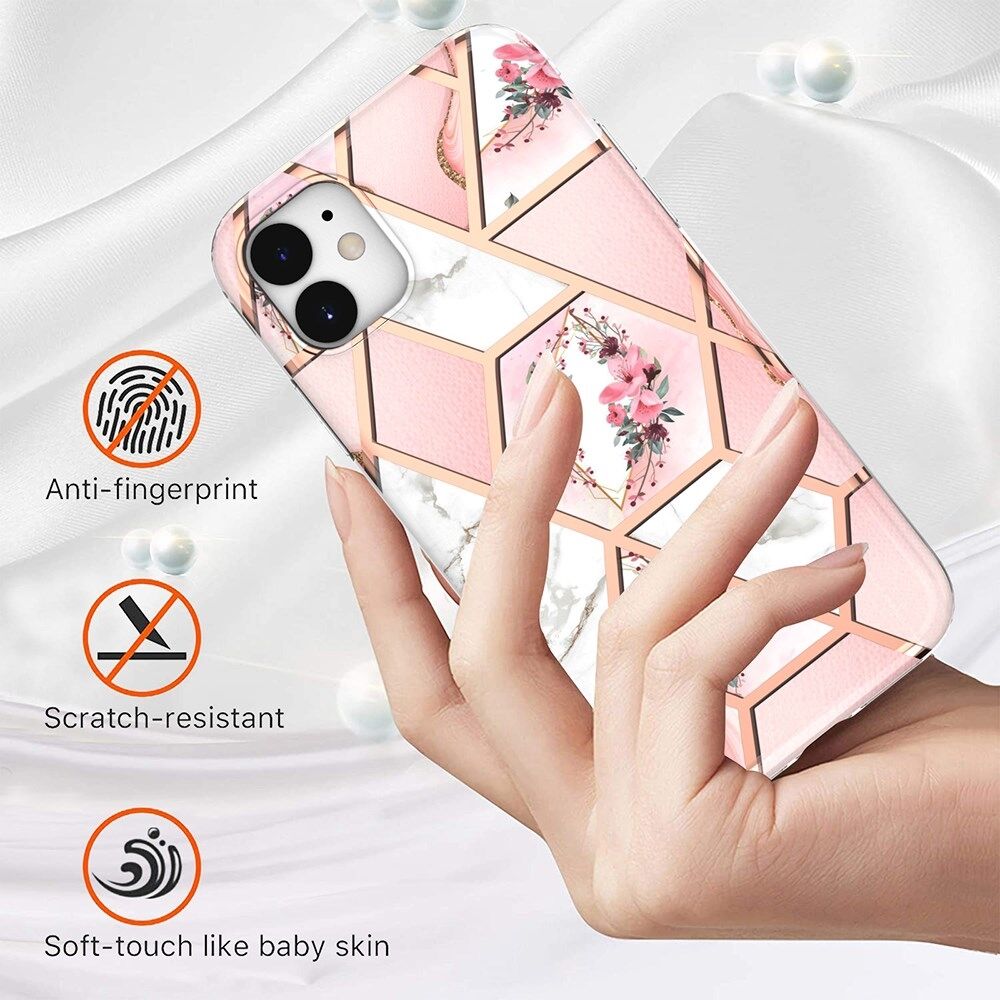 2.0mm IMD IML Drop-resistant Electroplating Marble Flower Pattern TPU Phone Case for iPhone 11 6.1 inch