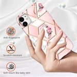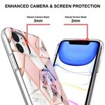 2.0mm IMD IML Drop-resistant Electroplating Marble Flower Pattern TPU Phone Case for iPhone 11 6.1 inch - Pink Marble/Flower