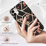 2.0mm IMD IML Drop-resistant Electroplating Marble Flower Pattern TPU Phone Case for iPhone 11 6.1 inch - Black Marble/Flower