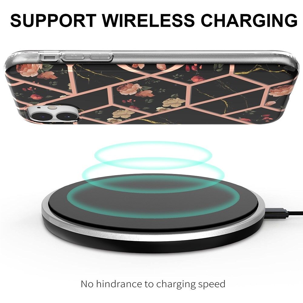 2.0mm IMD IML Drop-resistant Electroplating Marble Flower Pattern TPU Phone Case for iPhone 11 6.1 inch