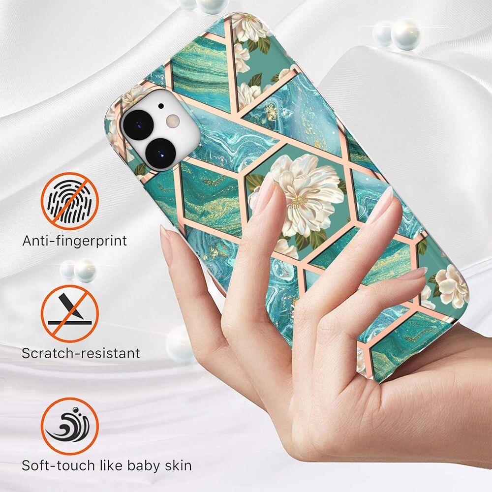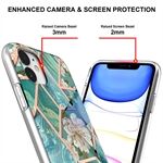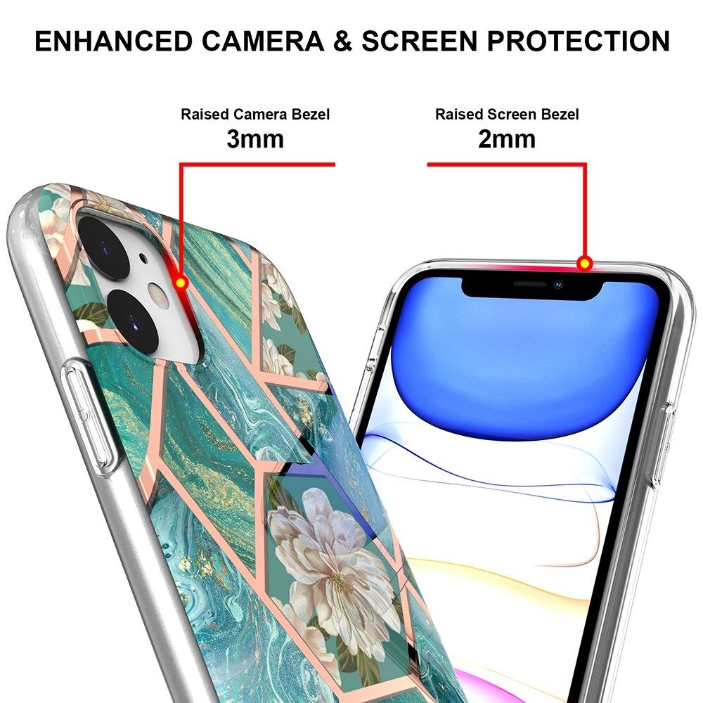 2.0mm IMD IML Drop-resistant Electroplating Marble Flower Pattern TPU Phone Case for iPhone 11 6.1 inch - Green Marble/Flower
