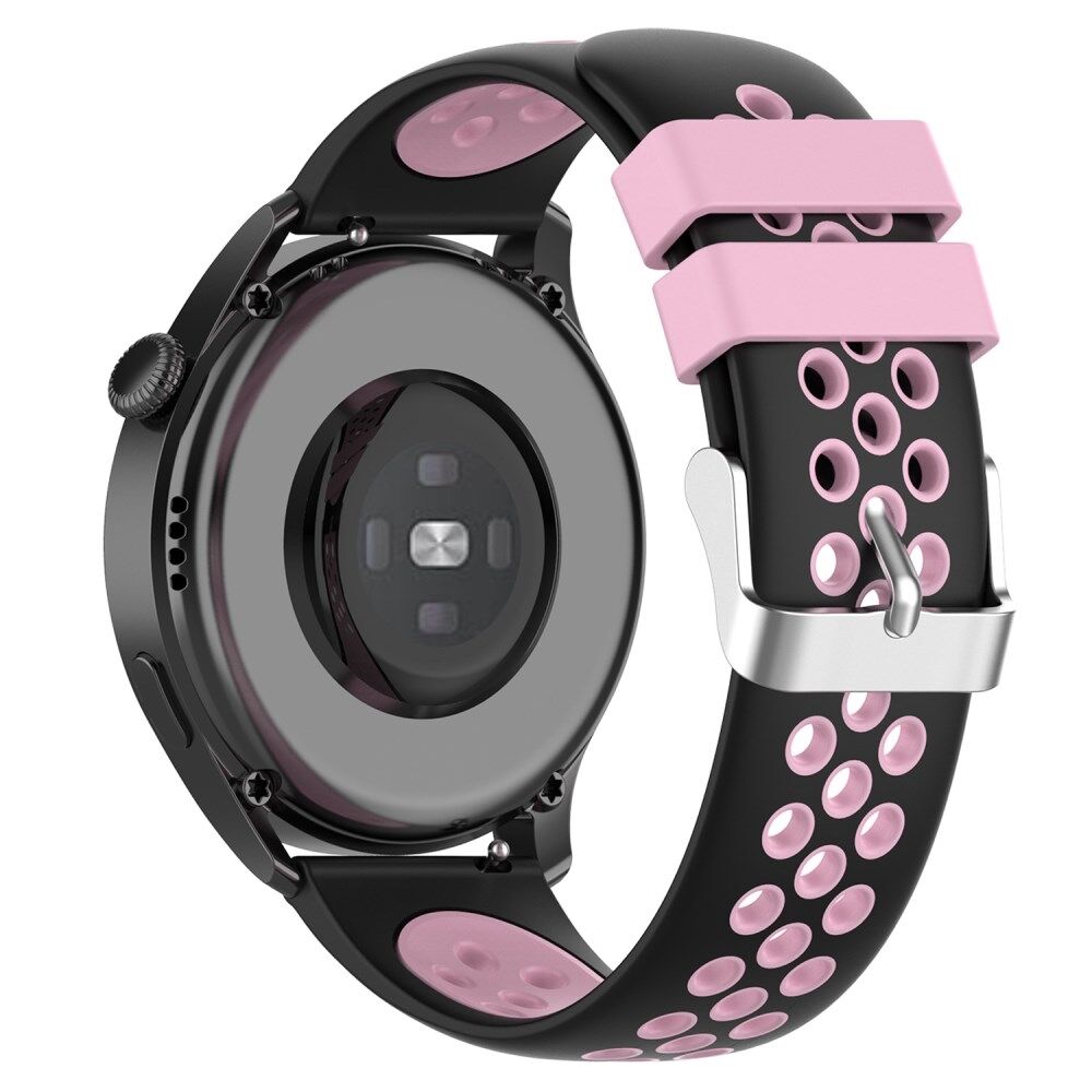 22mm Breathable Dual Color Silicone Watch Strap Wristband with Multiple Holes Design for Huawei Watch GT3 46mm/Samsung Gear S3 Frontier/Classic - Black/Pink