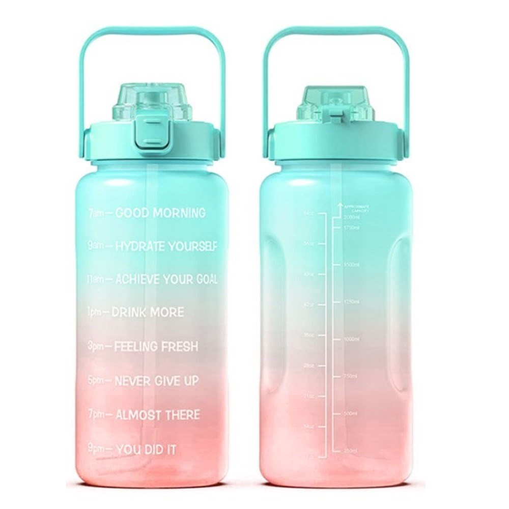 2L Portable Outdoor Travel Sports Water Bottle Fitness Straw Cup with Time Marker (BPA Free, No FDA Certificate)