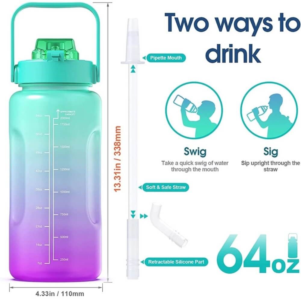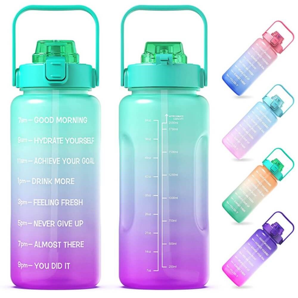2L Portable Outdoor Travel Sports Water Bottle Fitness Straw Cup with Time Marker (BPA Free, No FDA Certificate)