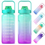 2L Portable Outdoor Travel Sports Water Bottle Fitness Straw Cup with Time Marker (BPA Free, No FDA Certificate) - Gradient Purple