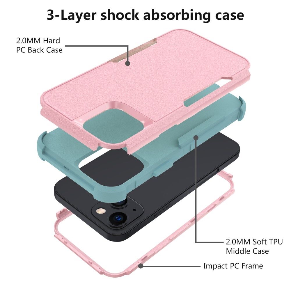 3 in 1 Detachable Cell Phone Cover Shock-Proof Anti-scratch Protector TPU + PC Phone Case for iPhone 13 mini 5.4 inch - Pink/Grey Green