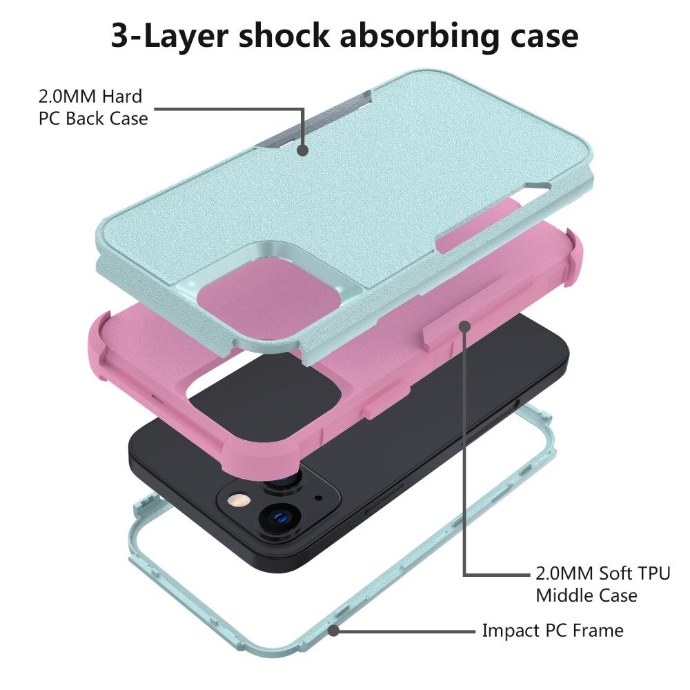 3 in 1 Detachable Cell Phone Cover Shock-Proof Anti-scratch Protector TPU + PC Phone Case for iPhone 13 mini 5.4 inch - Grey Green/Pink