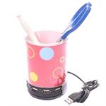 4 Port USB Hub Pen Holder with LED Light and Speaker