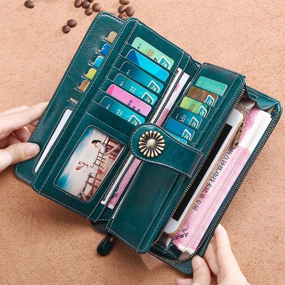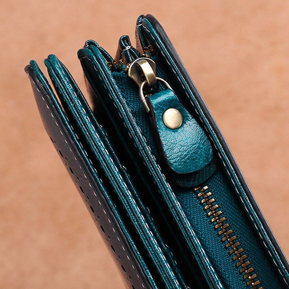 5162 Genuine Cowhide Leather Women Wallet Large Capacity Money Purse Lady Clutch Bag Wristlet Handbag with Hand Strap