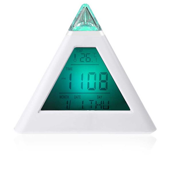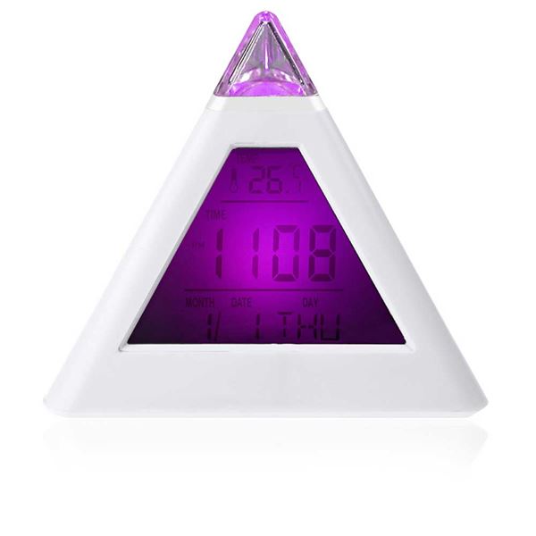 7 LED Color Changing Pyramid Digital LCD Triangle Clock