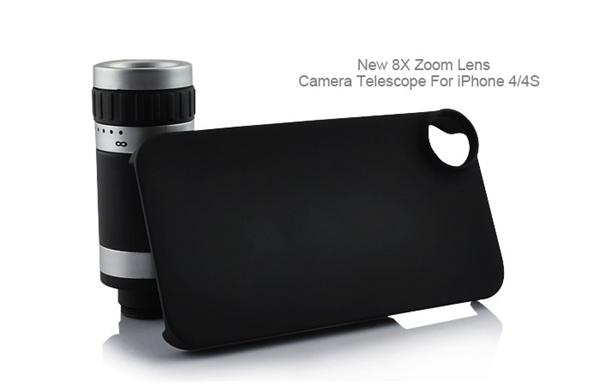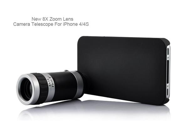 8x Zoom Telescope Lens & Rubber Back Case for iPhone 4 / 4S