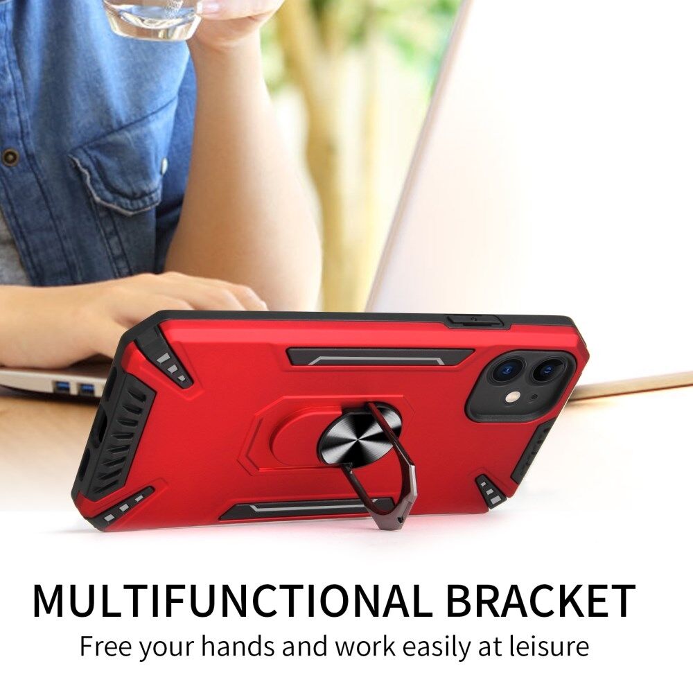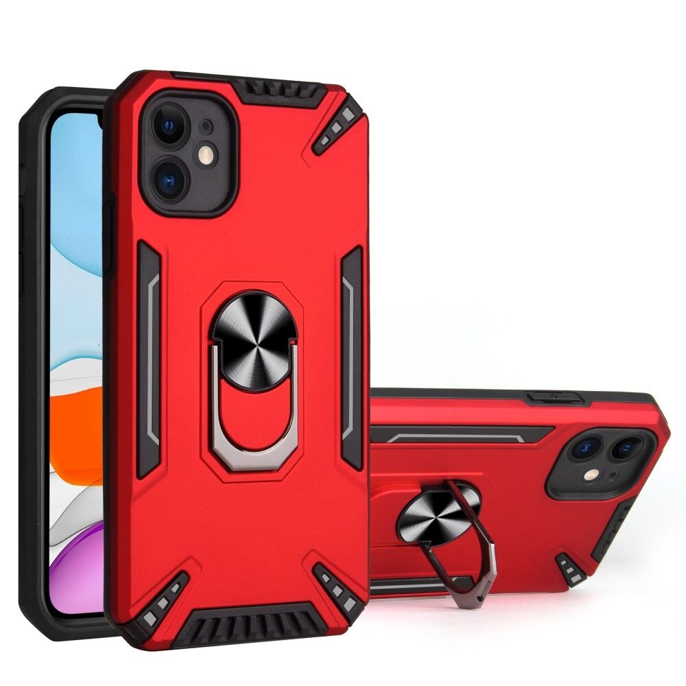 Adjustable Kickstand Design 2-in-1 Dual Protection Hybrid Phone Case Cover Shell with Built-In Metal Sheet for iPhone 11 6.1 inch - Red