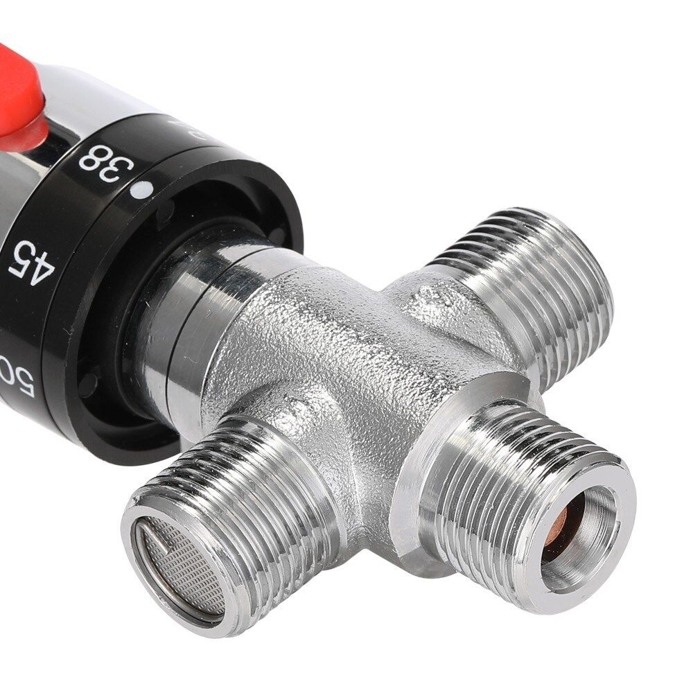 Adjustable Thermostatic Bathroom Mixer Valve Durable Brass Water Mixer Hot/Cold Water Mixing Temperature Control Valve for Home Water Heater