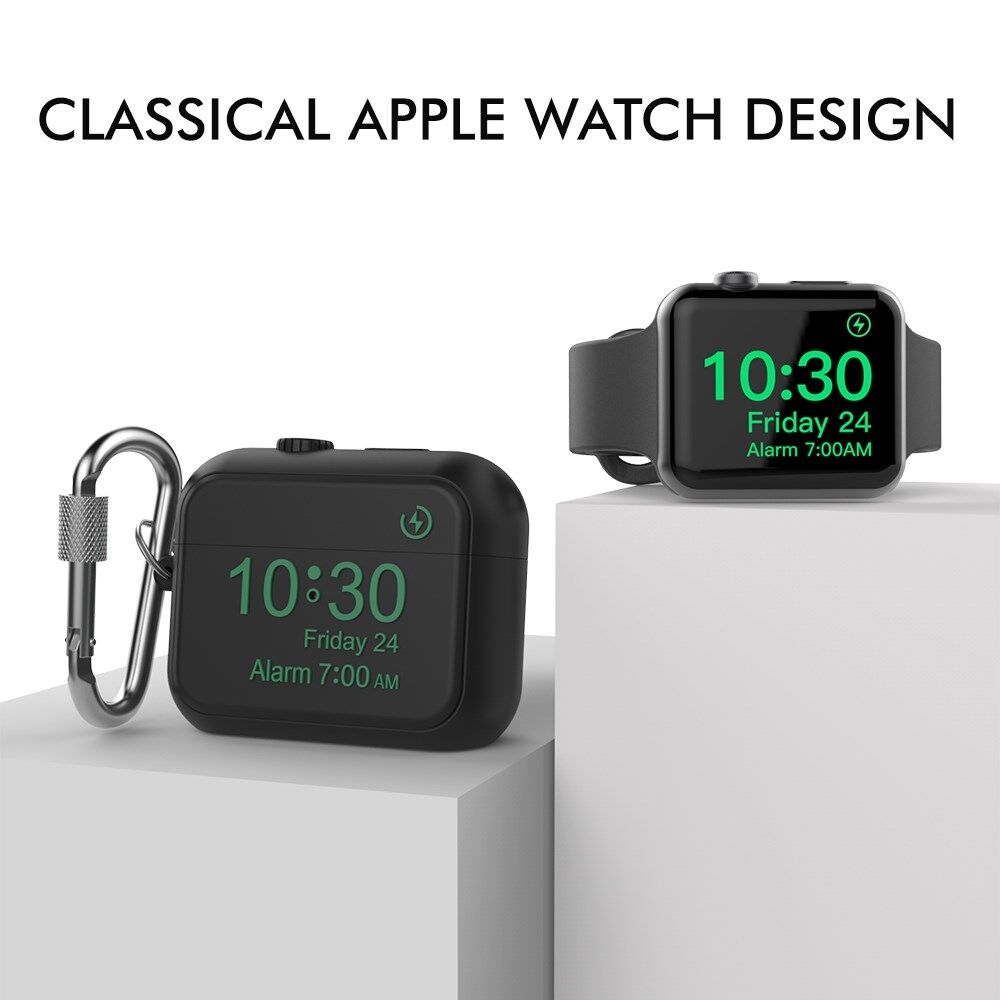 AHASTYLE PT104 For Apple AirPods Pro 2 Silicone Case Digital Clock Display Design Bluetooth Earphone Anti-drop Cover with Carabiner - Black
