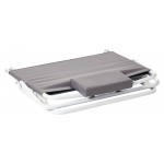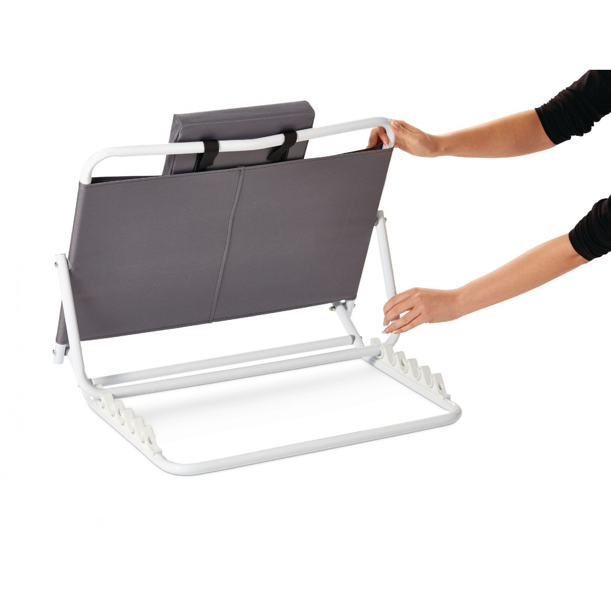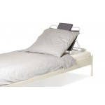 The back rest can be placed in any bed. The back rest allows you to sit up in bed. The back rest can be set to five different heights. The back rest can be folded completely flat, so it's easy to store, under the bed for example.