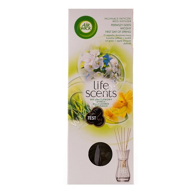 Air Wick Sticks with First Day of Spring scent have a gentle aroma of freshly cut grass, apple blossoms and daffodils that freshen up the home.