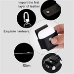 The AirPods bag has a secure Button closure and a handy carabiner clip that allows you to mount it on a backpack, purse or keychain.