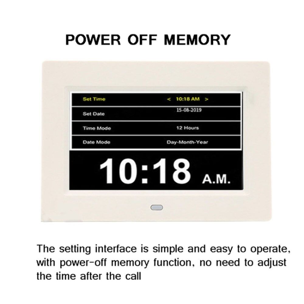 Alarm Clock Digital Calendar Day Clock 7-inch Large Display Programmable Medication Reminder, EU Plug