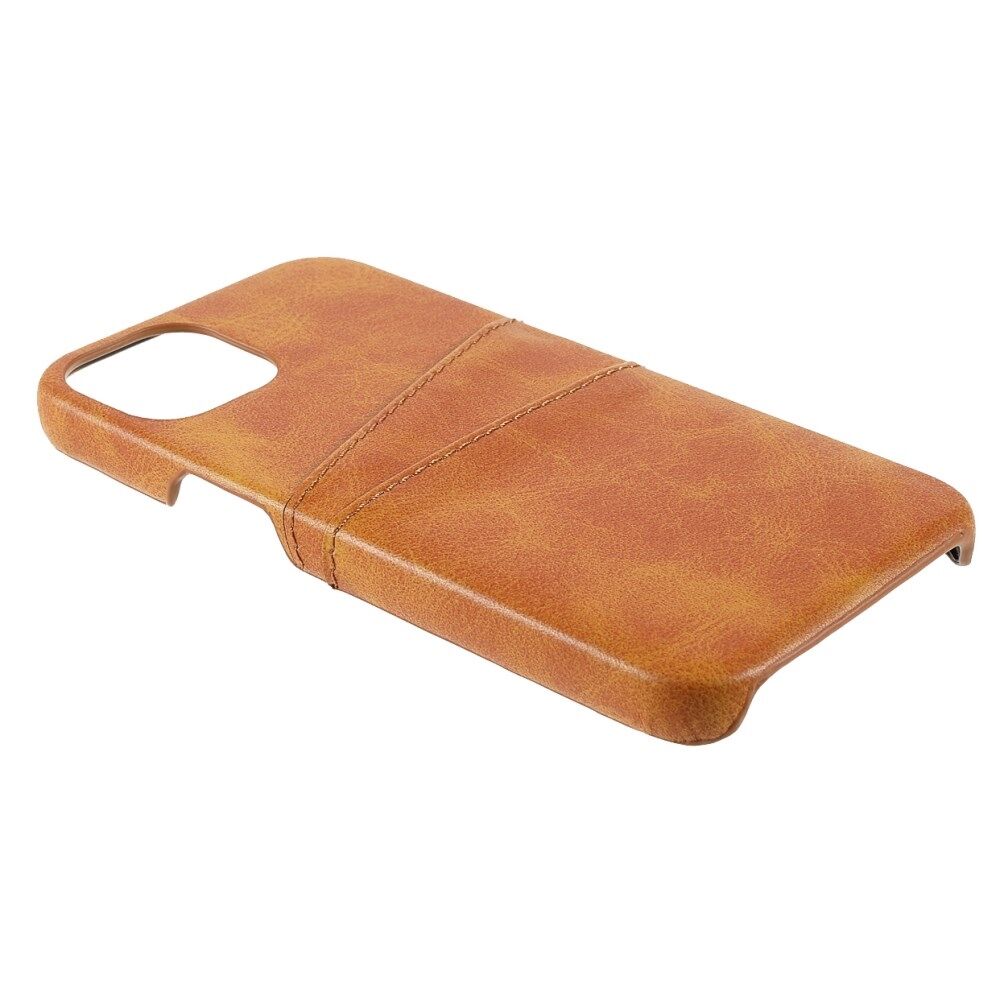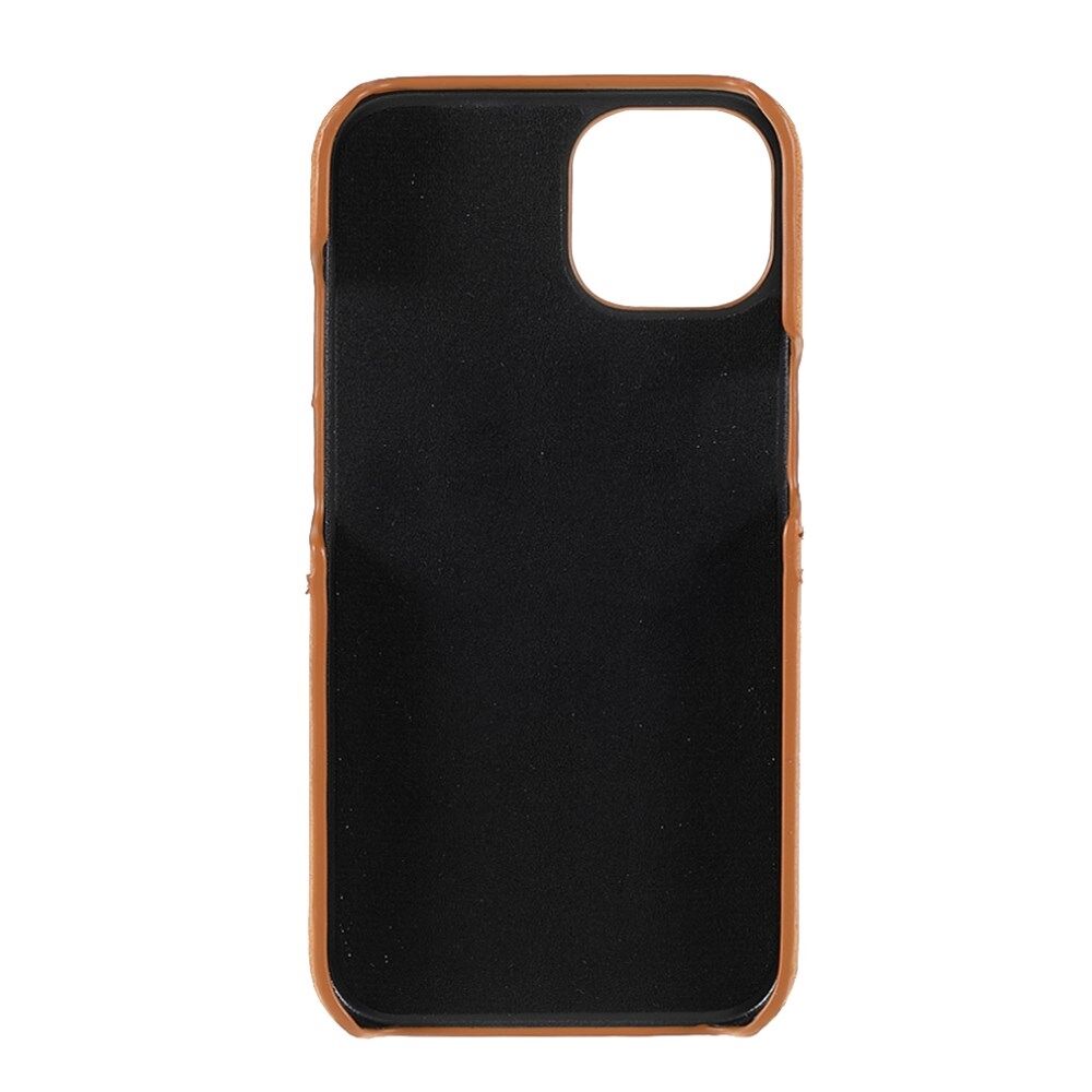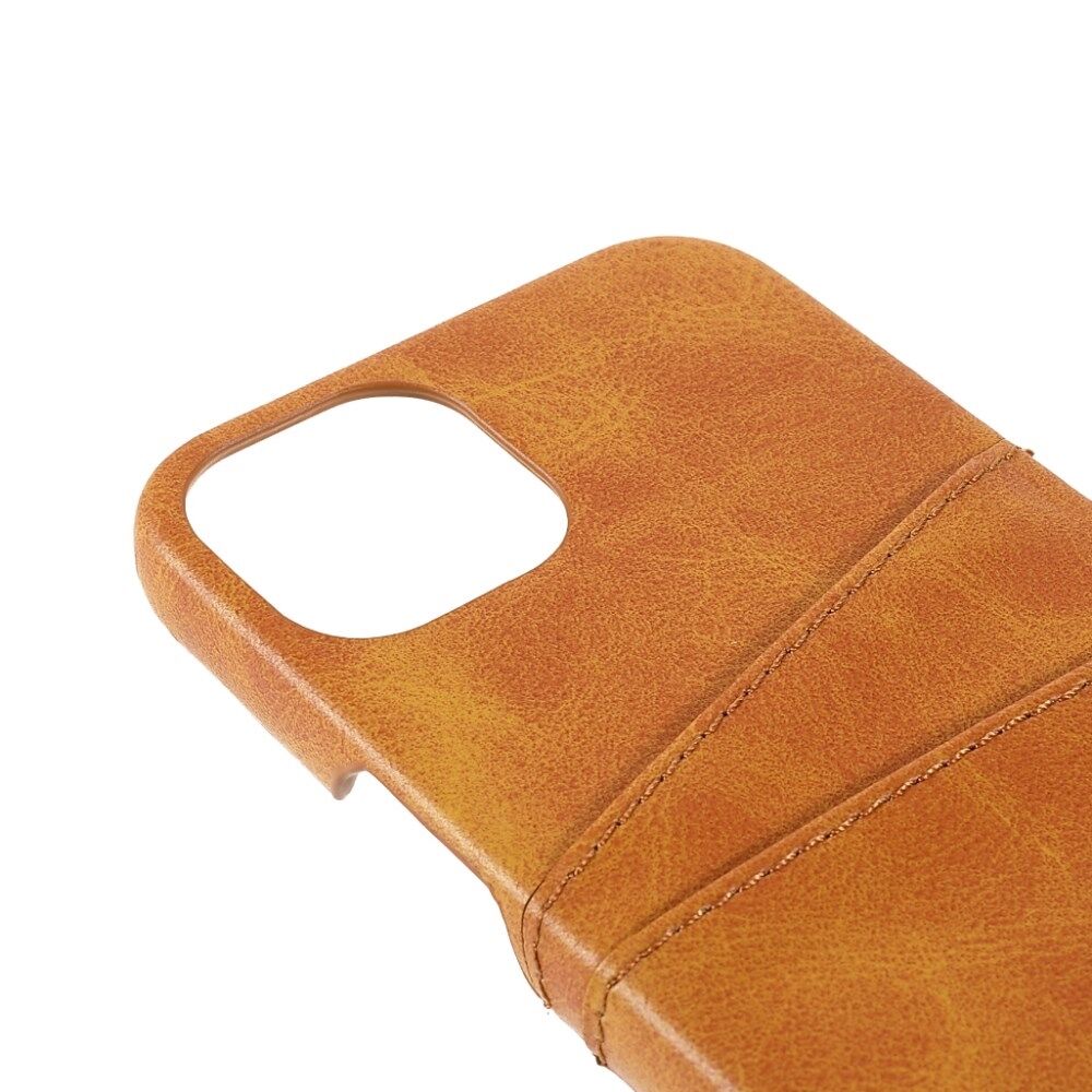 All-round Protected Leather Coated PC Back Phone Cover with Double Card Slots for iPhone 13 mini 5.4 inch - Brown