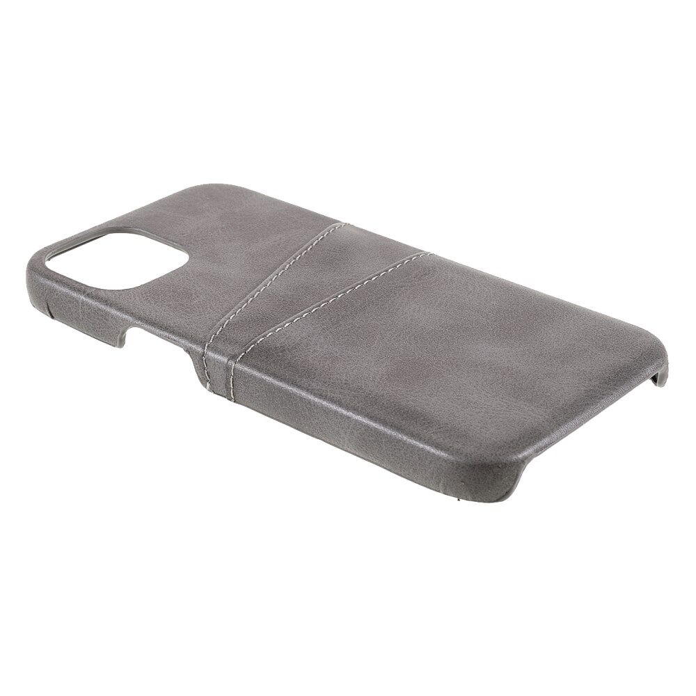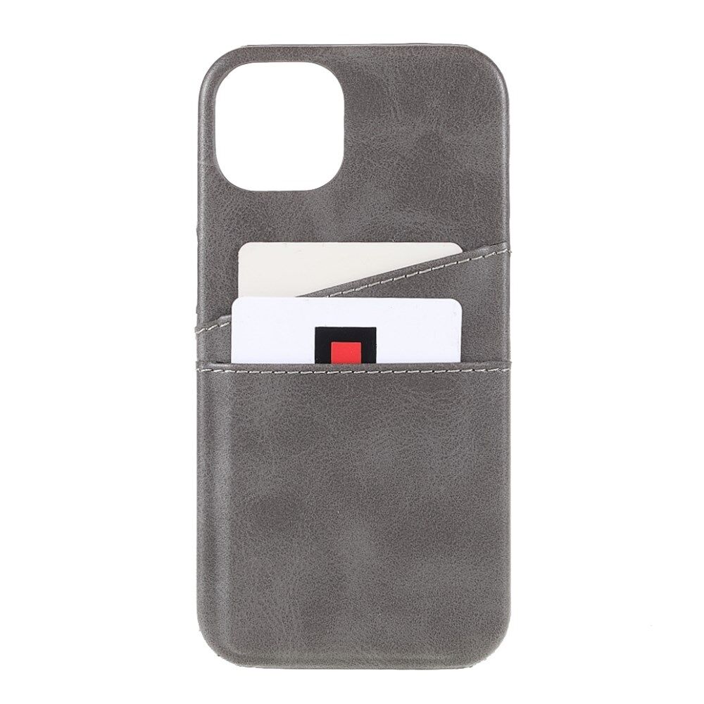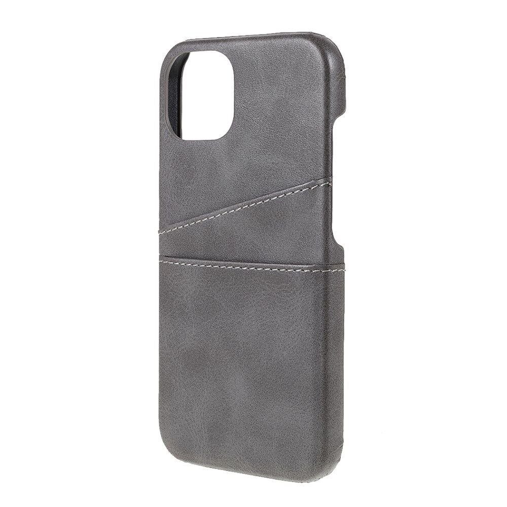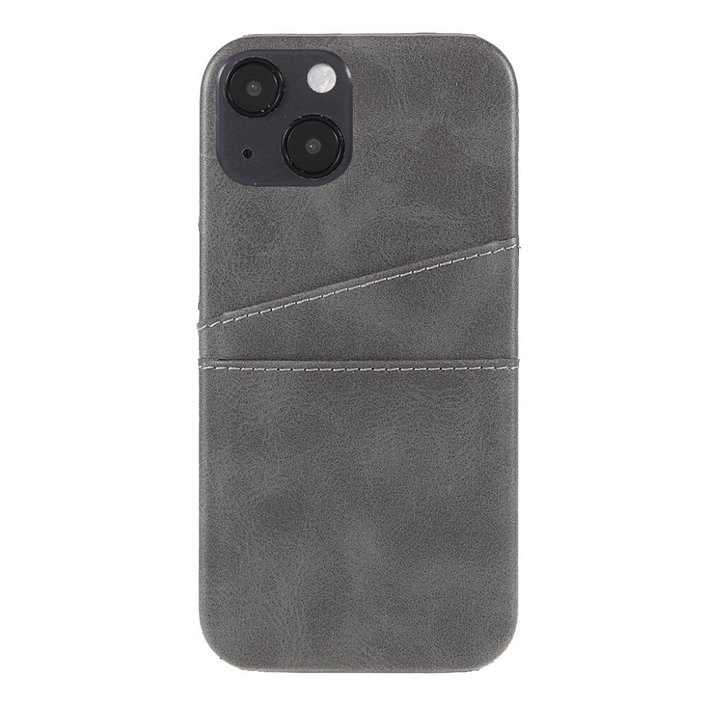 All-round Protected Leather Coated PC Back Phone Cover with Double Card Slots for iPhone 13 mini 5.4 inch - Grey