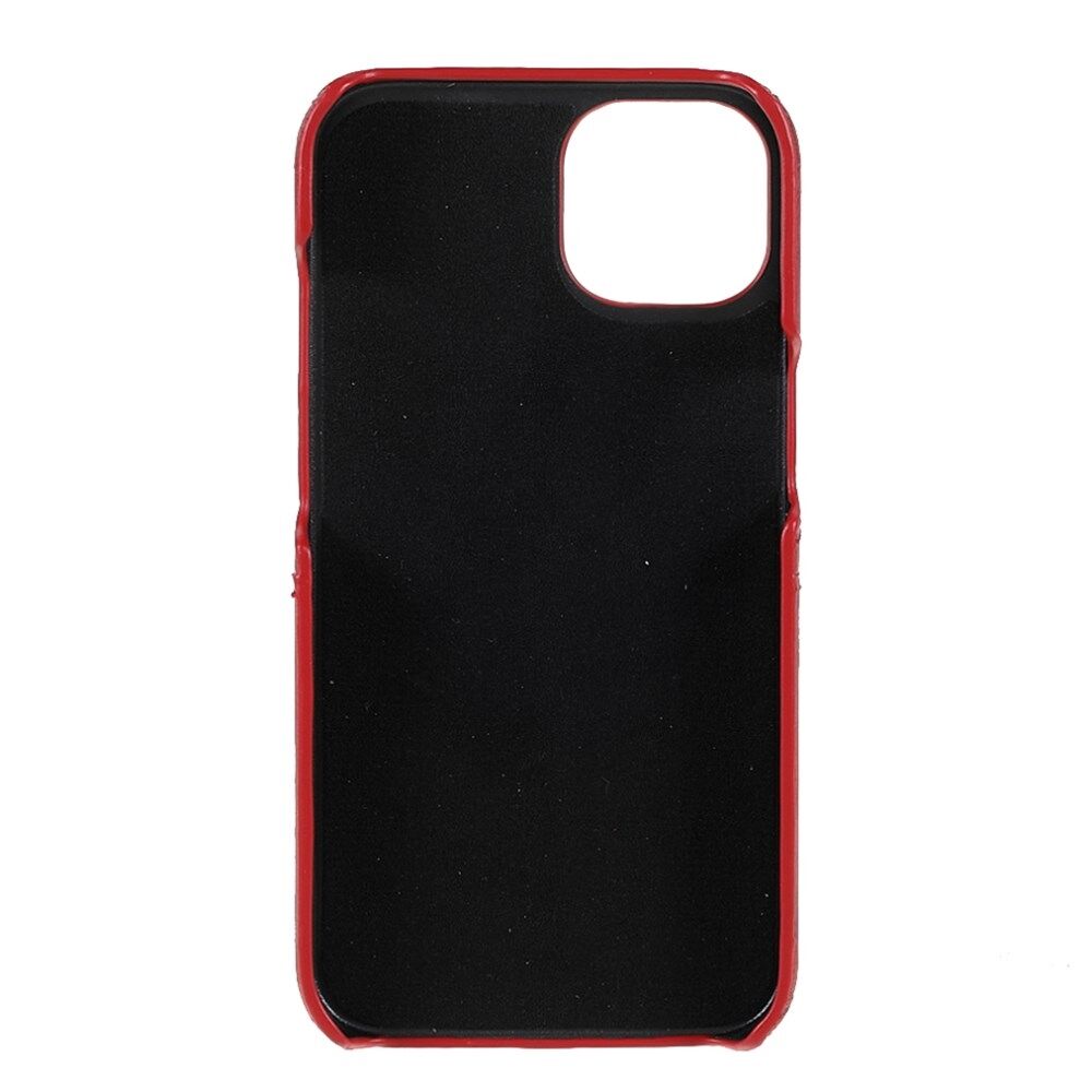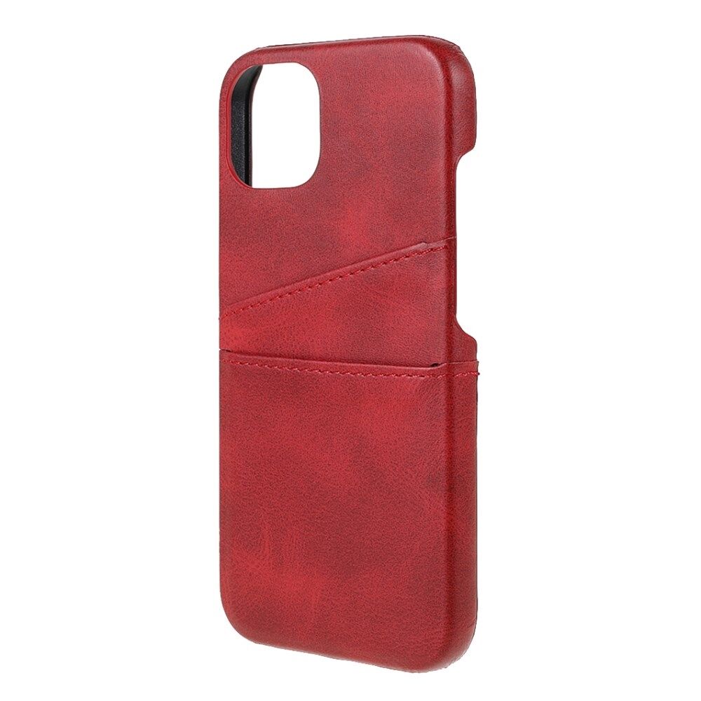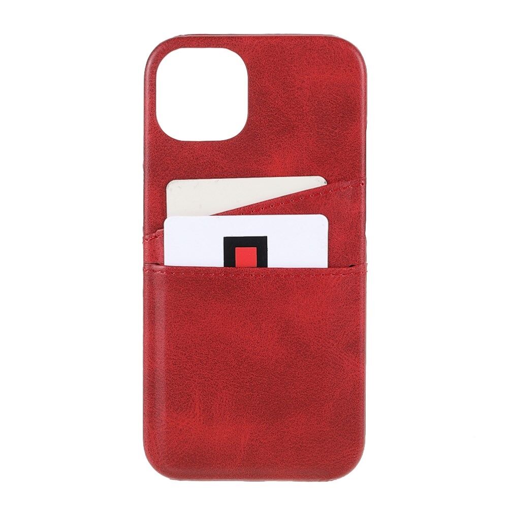 All-round Protected Leather Coated PC Back Phone Cover with Double Card Slots for iPhone 13 mini 5.4 inch - Red
