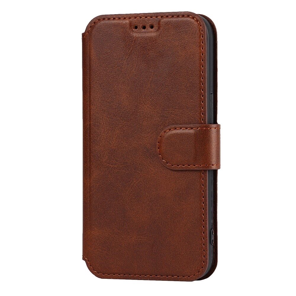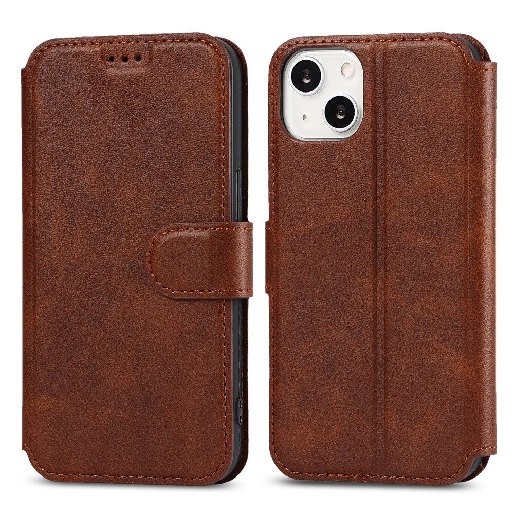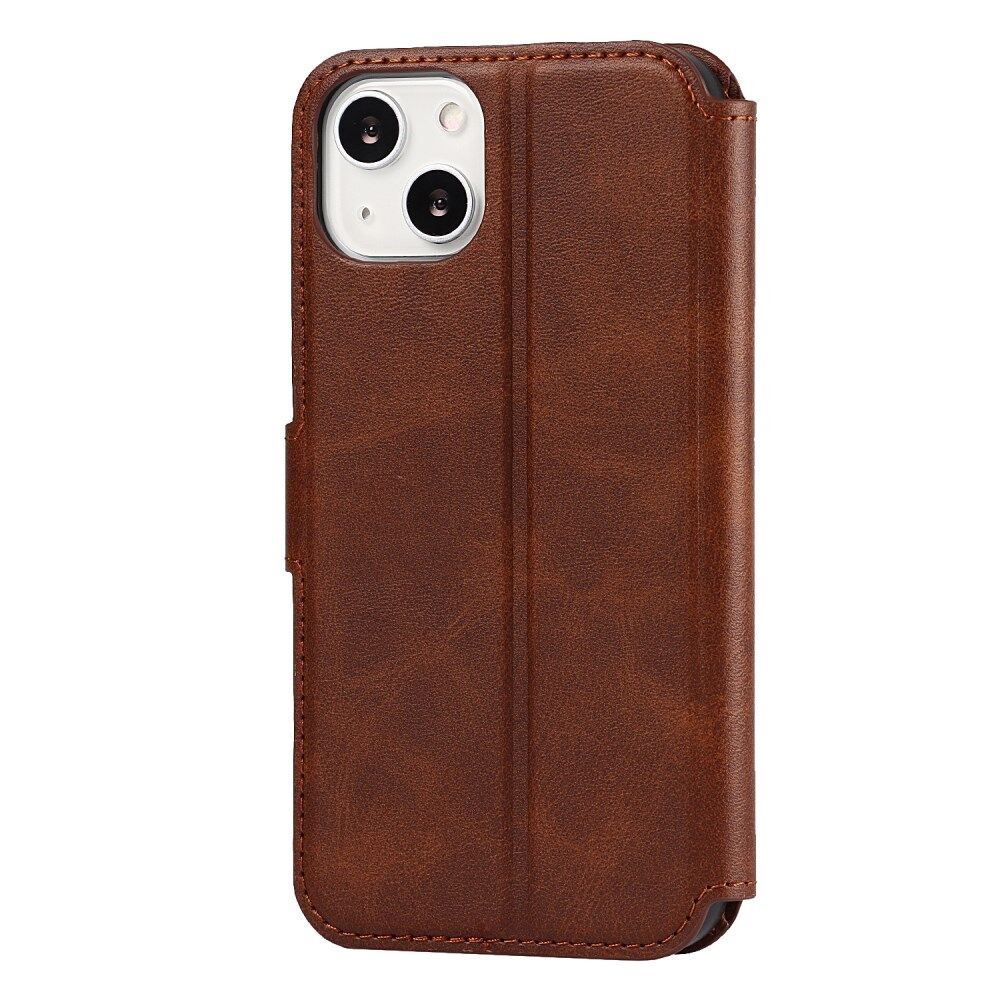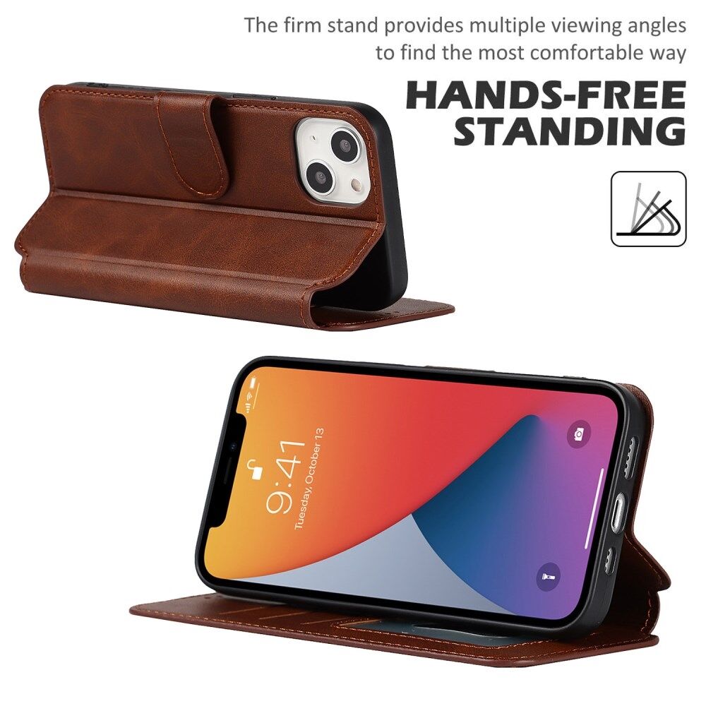All-round Protection PU Leather Phone Stand Case Wallet Shell for iPhone 13 - Dark Brown