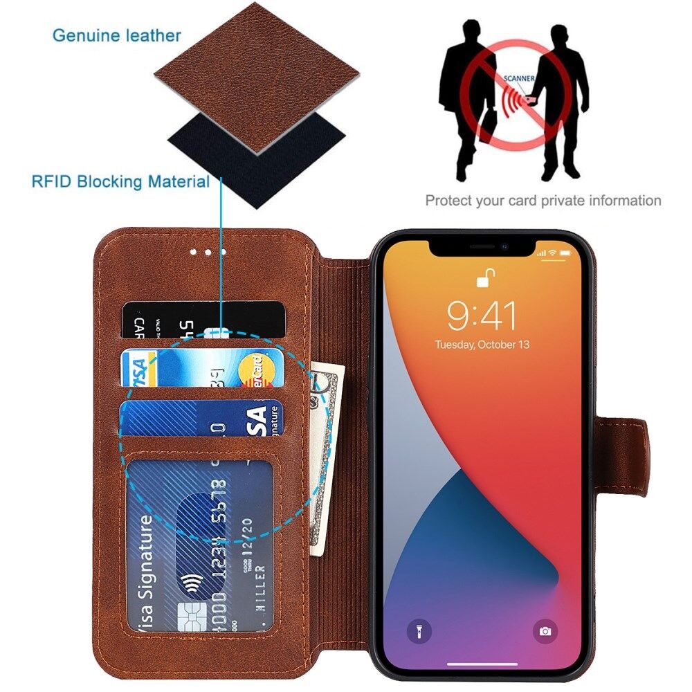 All-round Protection PU Leather Phone Stand Case Wallet Shell for iPhone 13 6.1 inch - Coffee