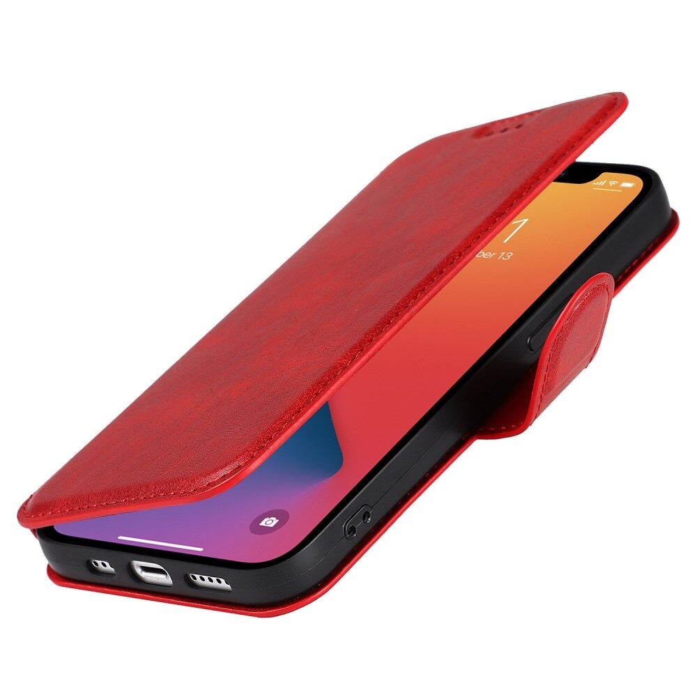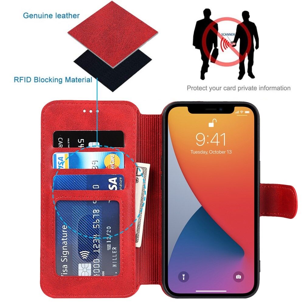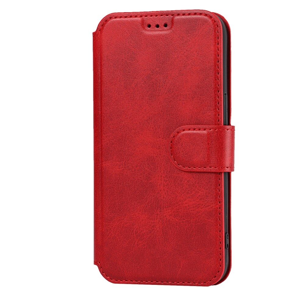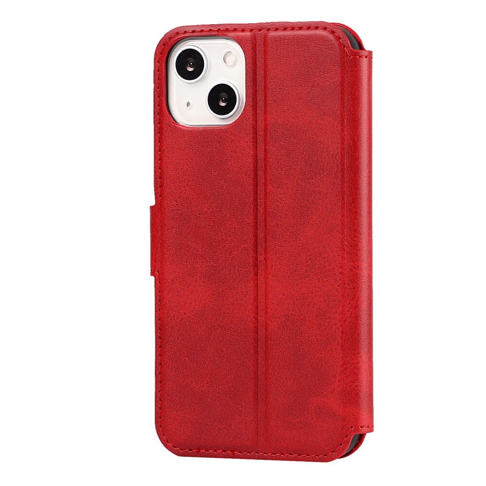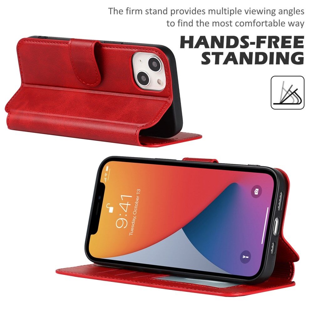 All-round Protection PU Leather Phone Stand Case Wallet Shell for iPhone 13 - Red