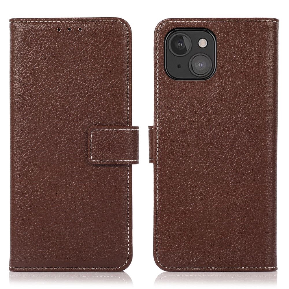Anti-drop Litchi Texture Leather Wallet Protective Cover Case for iPhone 13 mini 5.4 inch - Brown