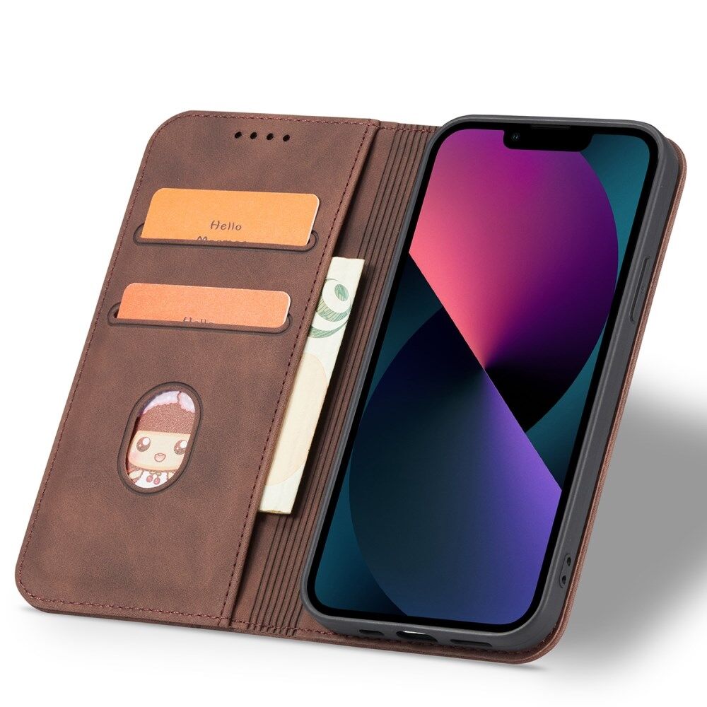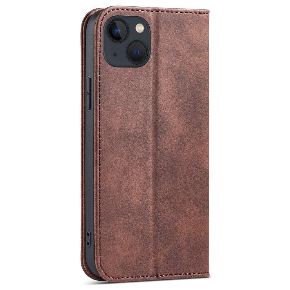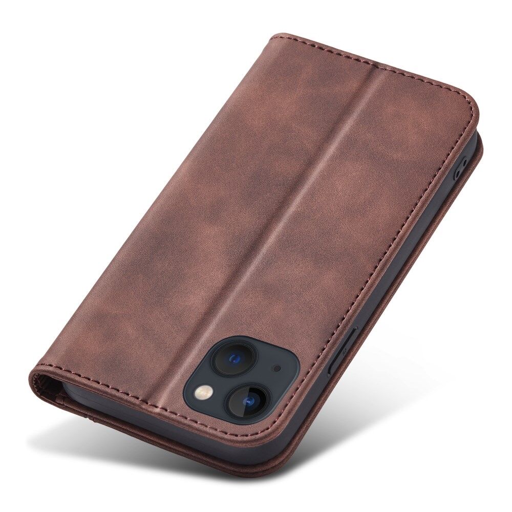 Anti-fall Folio Flip Leather Wallet Phone Stand Case Shell for iPhone 13 mini 5.4 inch - Coffee