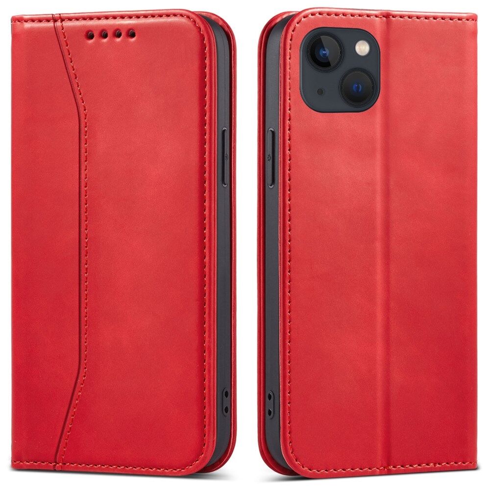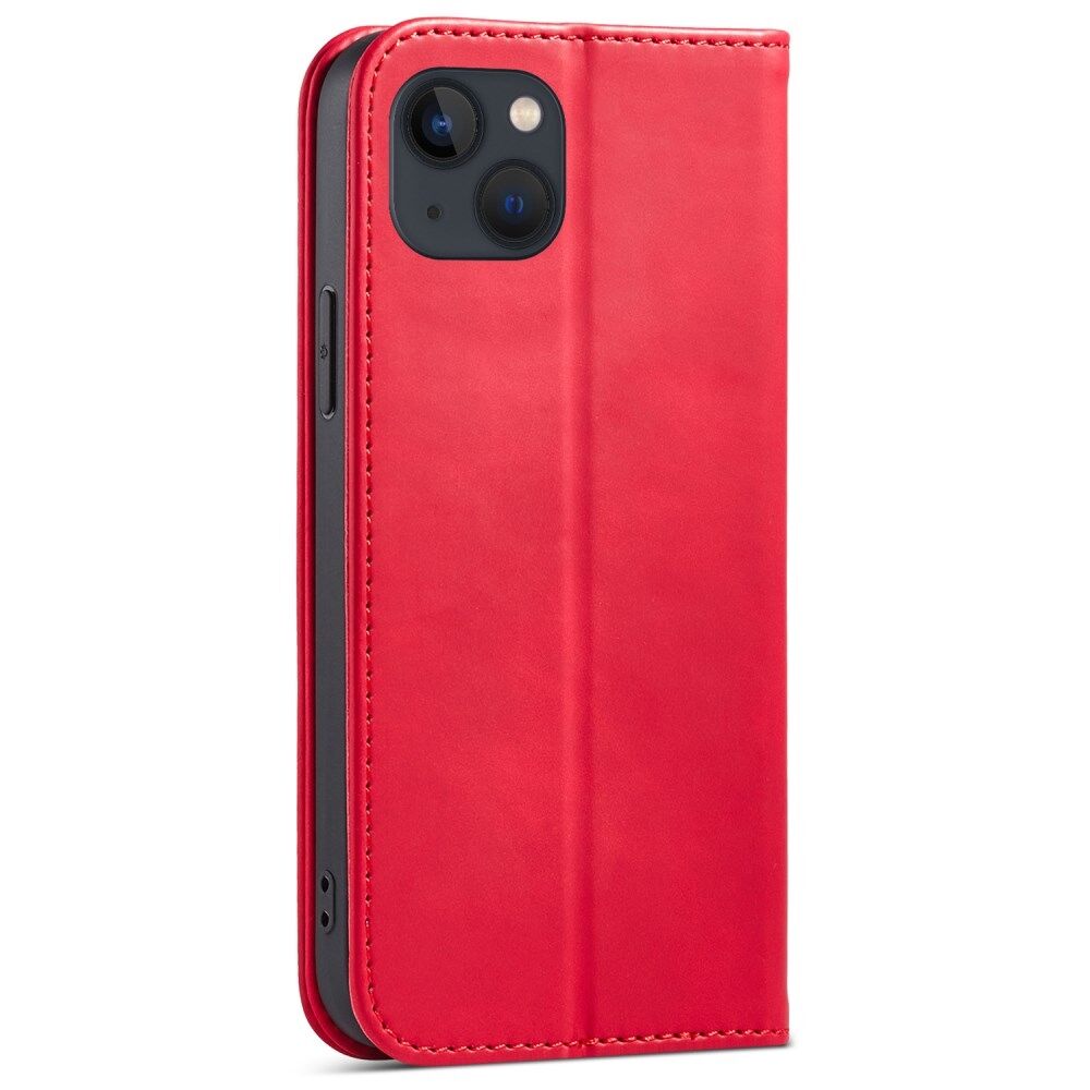 Anti-fall Folio Flip Leather Wallet Phone Stand Case Shell for iPhone 13 mini 5.4 inch - Red