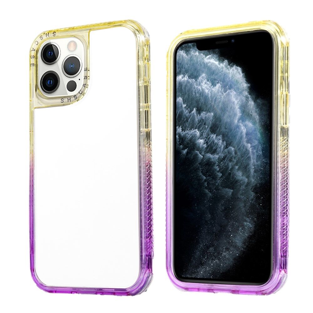 Anti-Fall Stylish Durable Dual Color Frame Hard PC + TPU Phone Case for iPhone 13 6.1 inch - Yellow/Purple