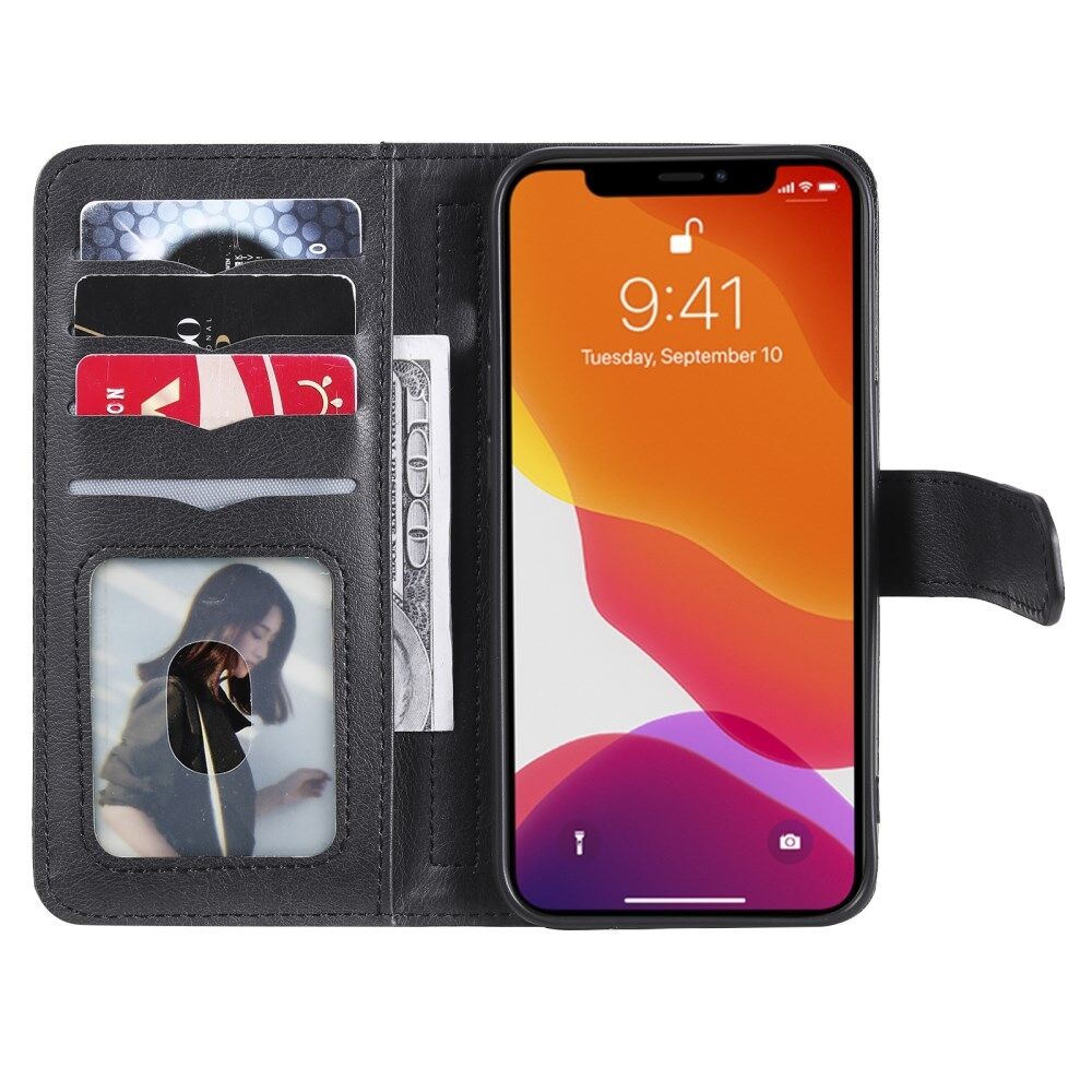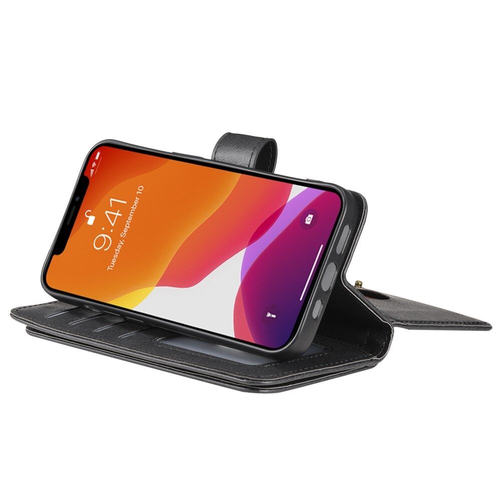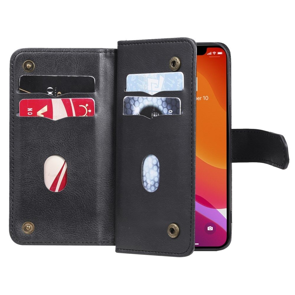 Anti-Scratch Phone Cover Stand Shell with Multiple Card Slots Wallet for iPhone 13 6.1 inch - Black
