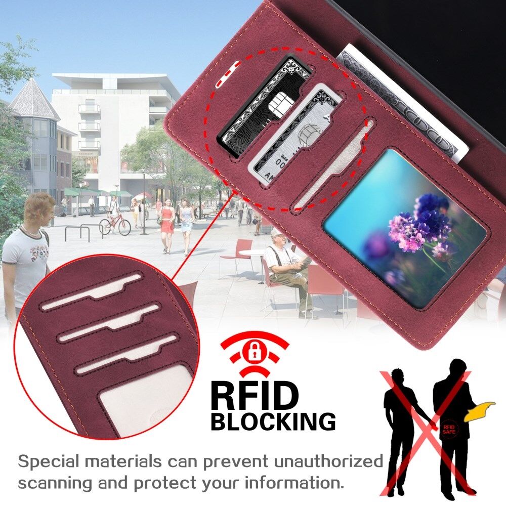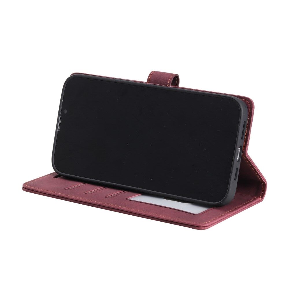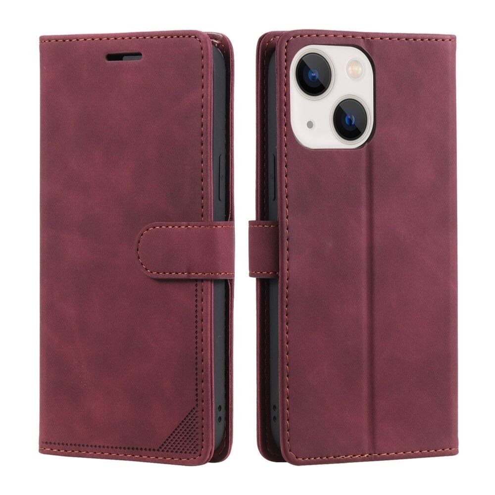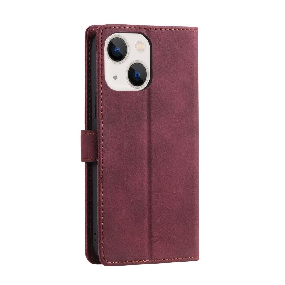 Anti-theft Swiping Design Wallet Stand Leather Phone Case Cover for iPhone 13 mini 5.4 inch - Red