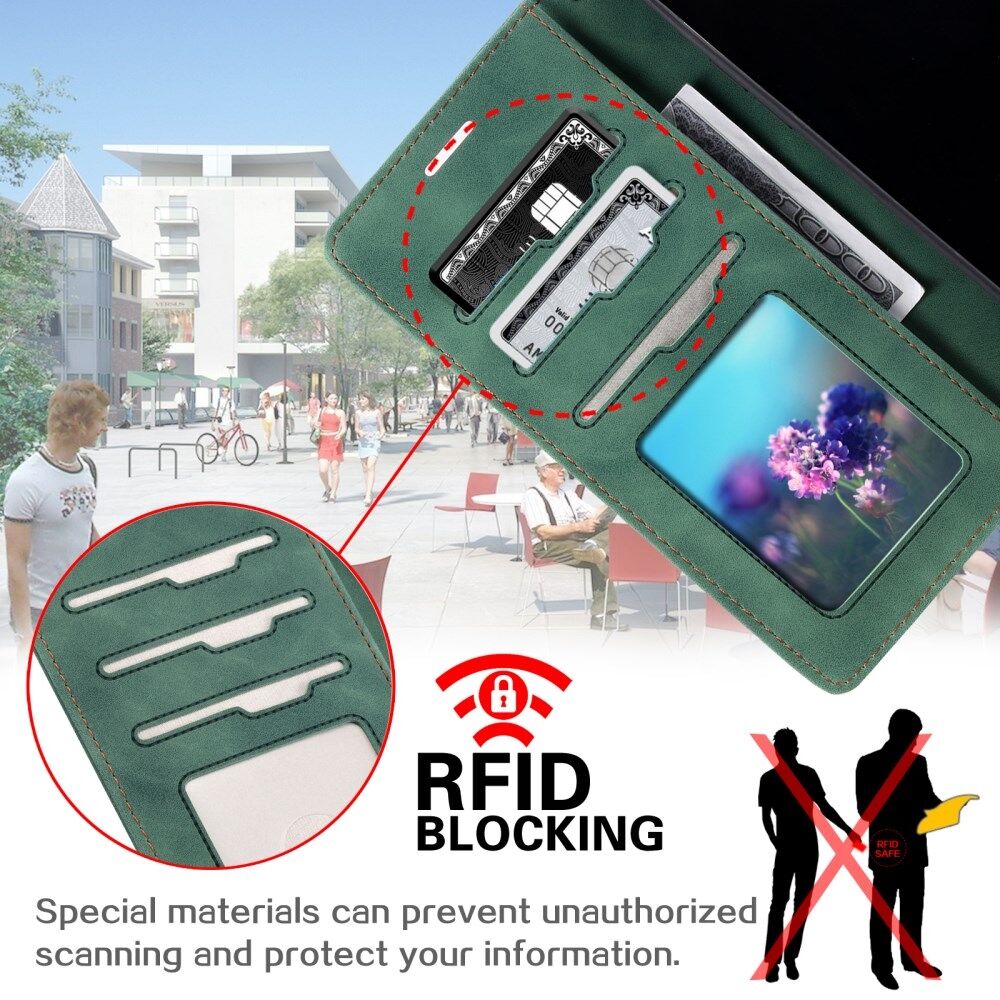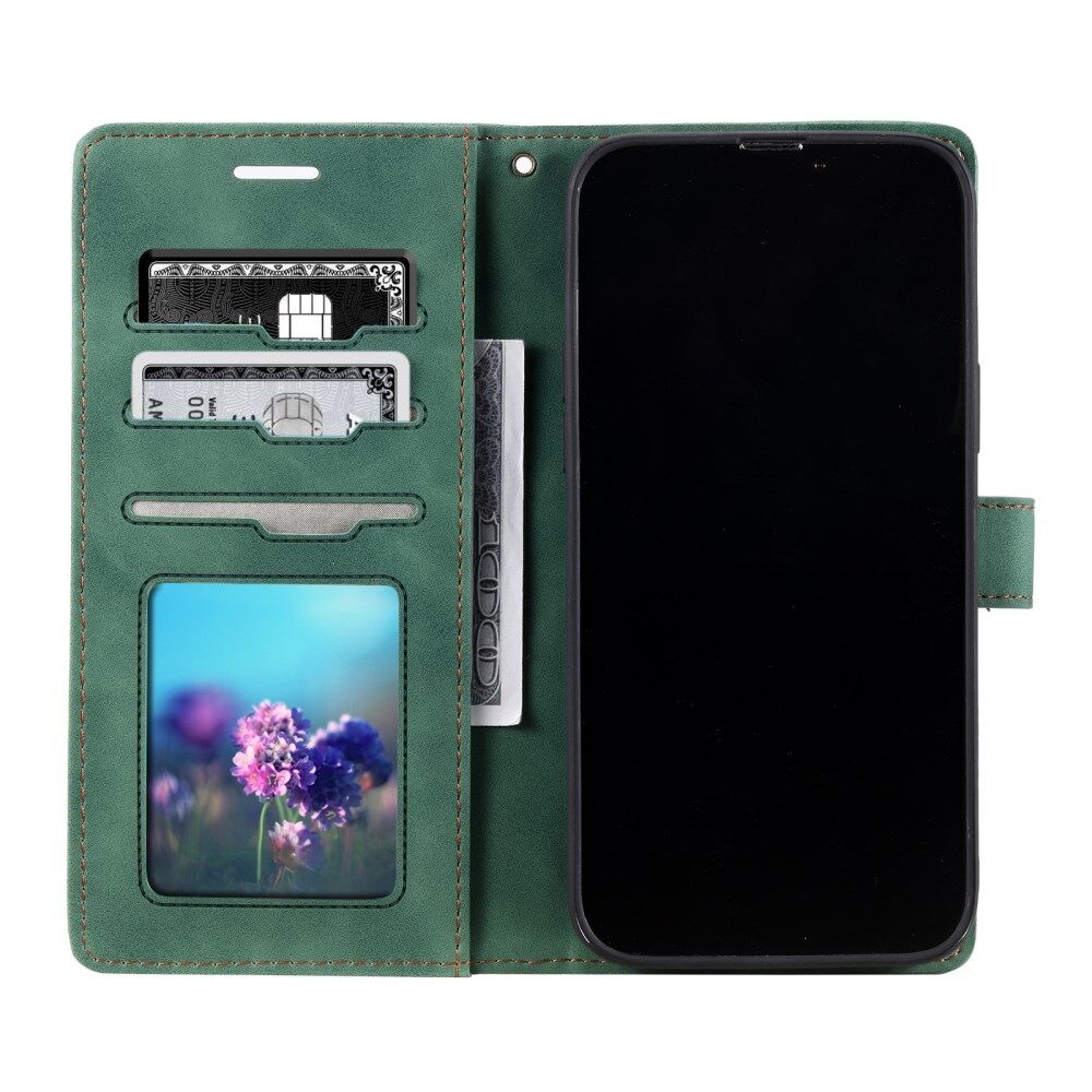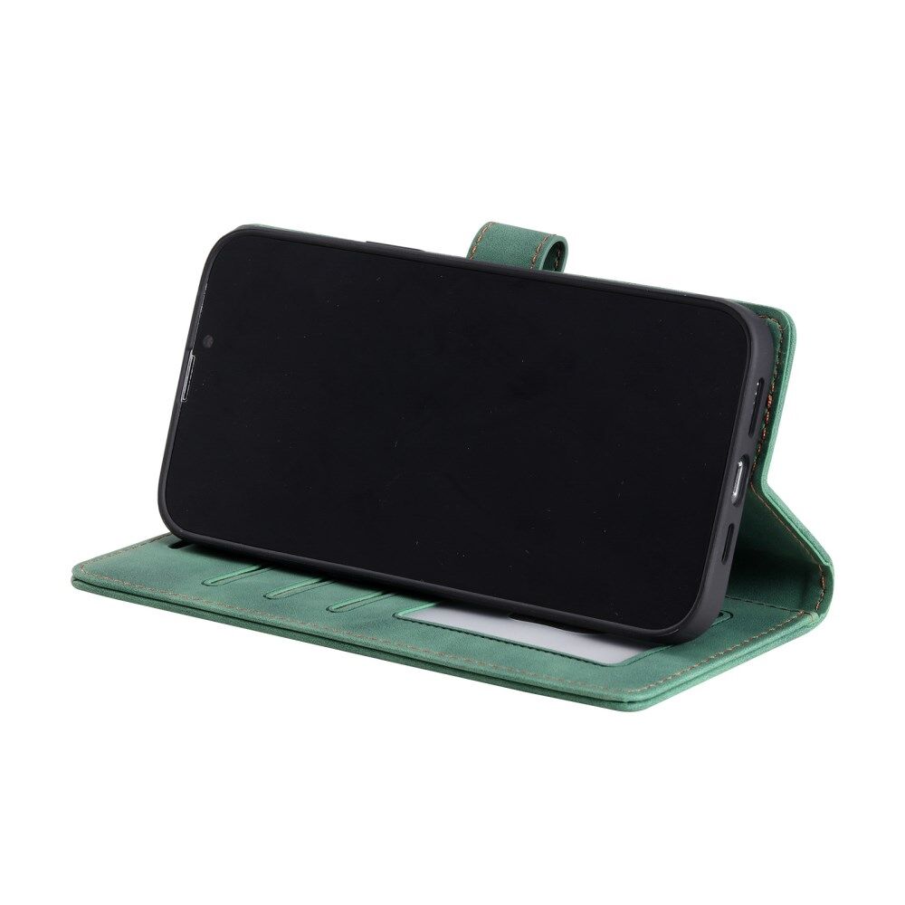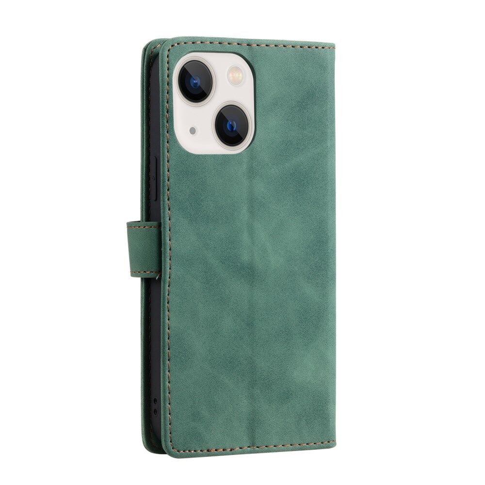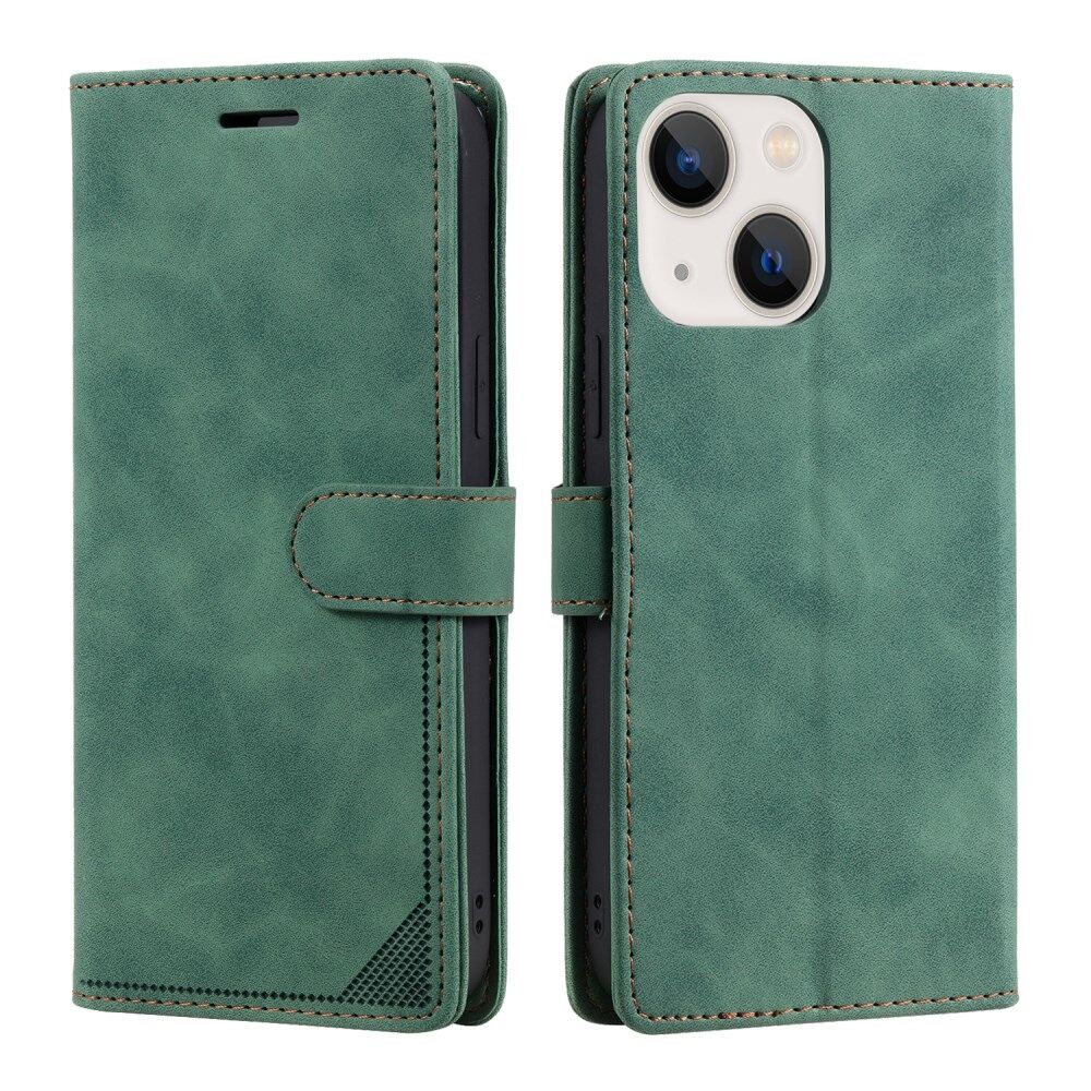 Anti-theft Swiping Design Wallet Stand Leather Phone Case Cover for iPhone 13 mini 5.4 inch - Green