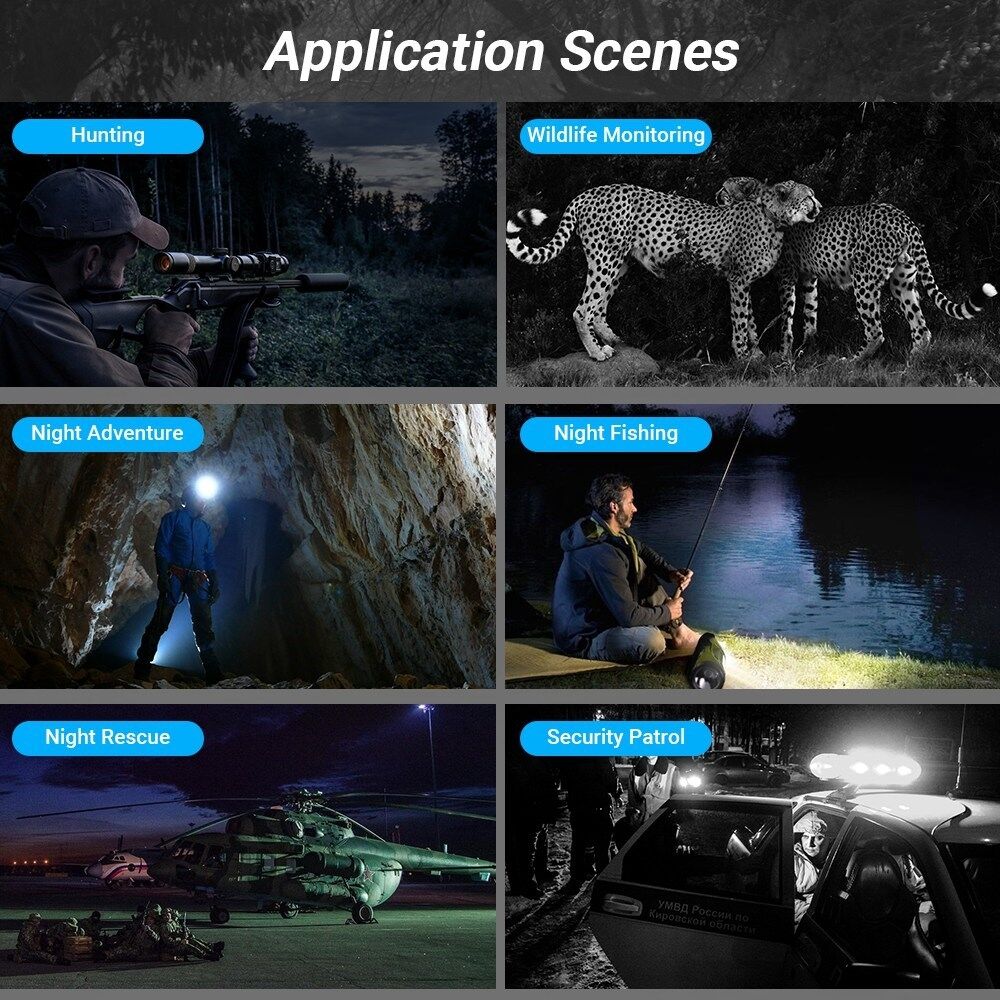 • Application Scenes: Hunting, Wildlife Monitoring, Night Adventure, Night Fishing, Night Rescue, Security Patrol