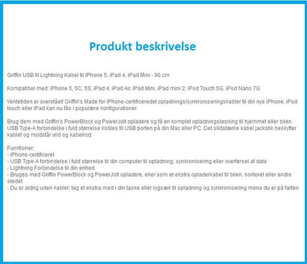 Apple lightning data cable iPad / iPhone 0.9meter - From Griffin