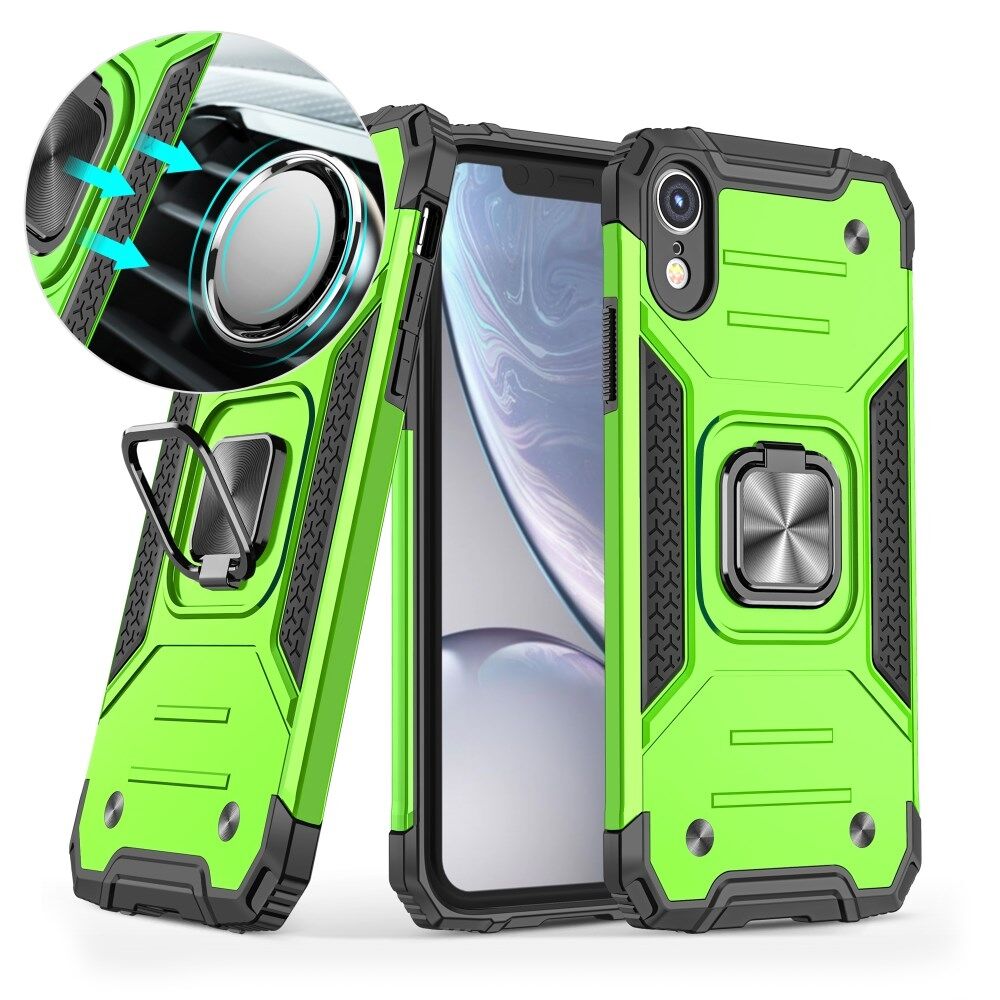 Armor Style Ring Kickstand Detachable TPU + PC Hybrid Shell with Metal Sheet for iPhone XR 6.1 inch - Green