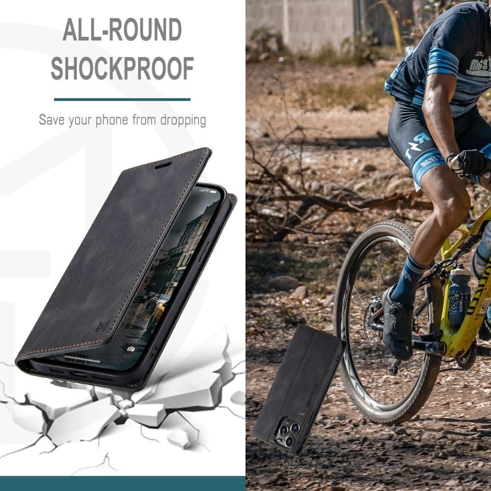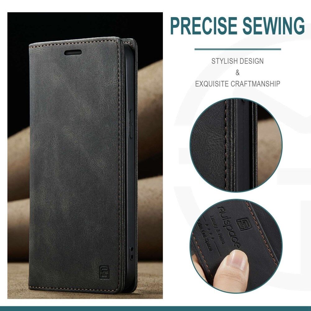 AUTSPACE A01 Series For iPhone 14 Pro 6.1 inch Retro Matte PU Leather Mobile Phone Anti-drop Case RFID Blocking Flip Stand Wallet Cover - Black