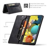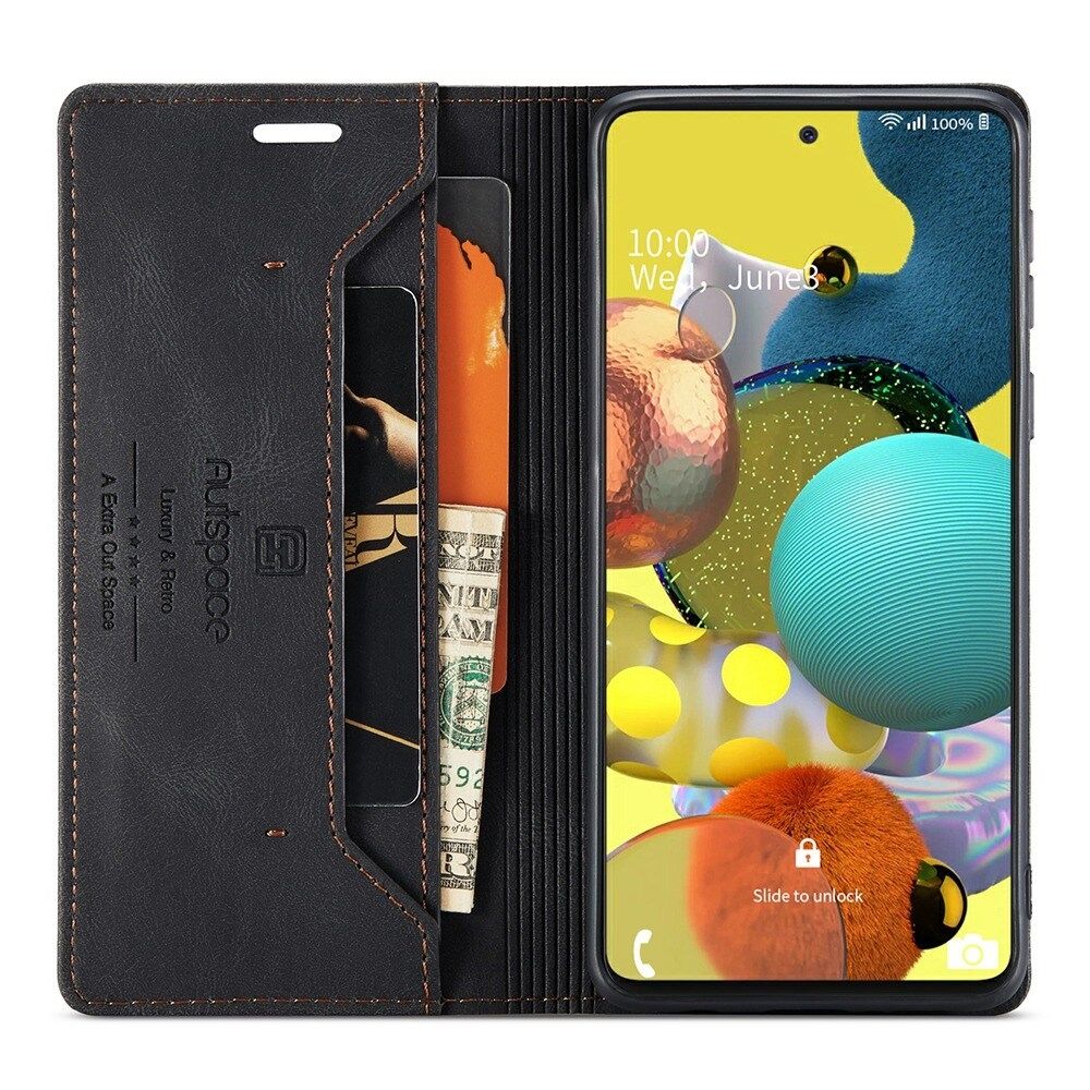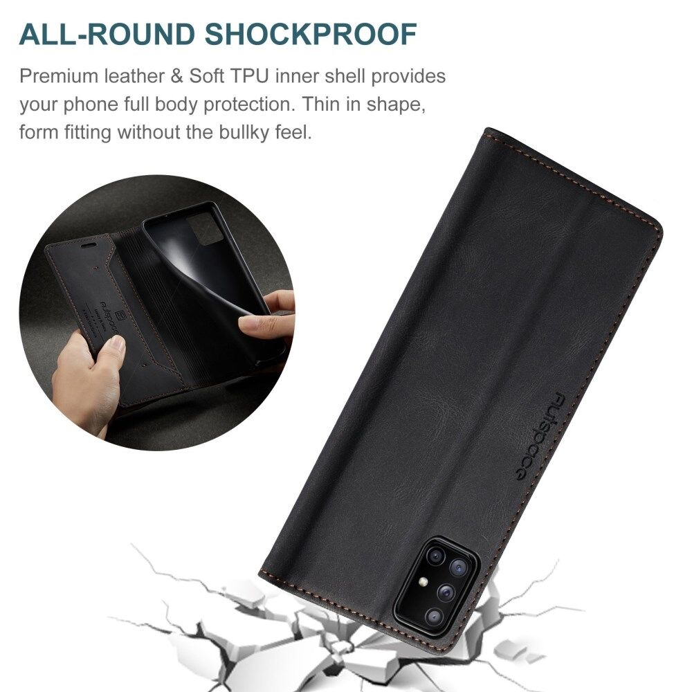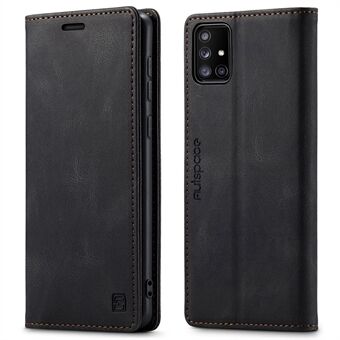AUTSPACE A01 Series for Samsung Galaxy A51 4G SM-A515 PU Leather Protective Shell, Overall Protection RFID Blocking Magnetic Closure Vintage Frosted Wallet Stand Flip Cover - Black