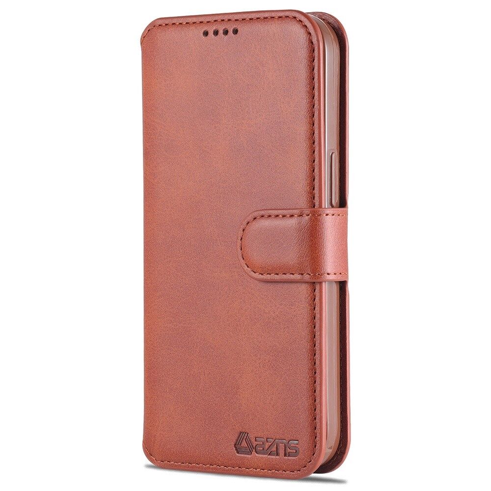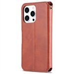 AZNS Wallet Design Magnetic Closure Anti-Fall Shockproof Leather Phone Cover Stand Case for iPhone 13 Pro 6.1 inch - Brown
