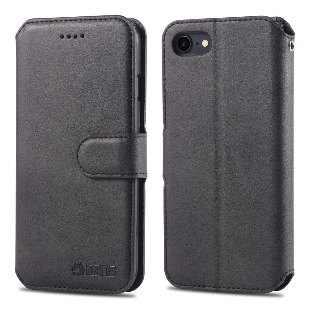 AZNS Wallet Leather Stand Case for iPhone 7/8/SE (2020)/SE (2022) - Black