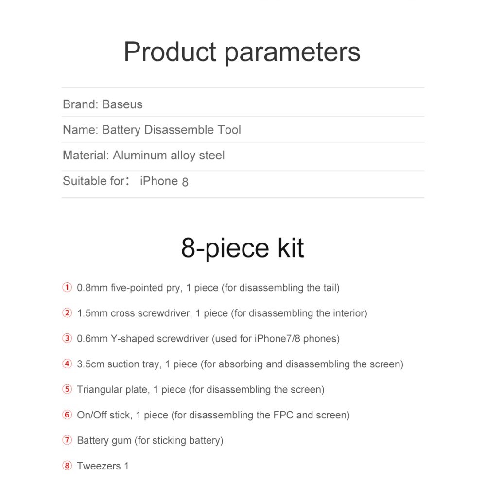 BASEUS Battery Adhesive Sticker Screwdriver Repair Tool Set for iPhone 8